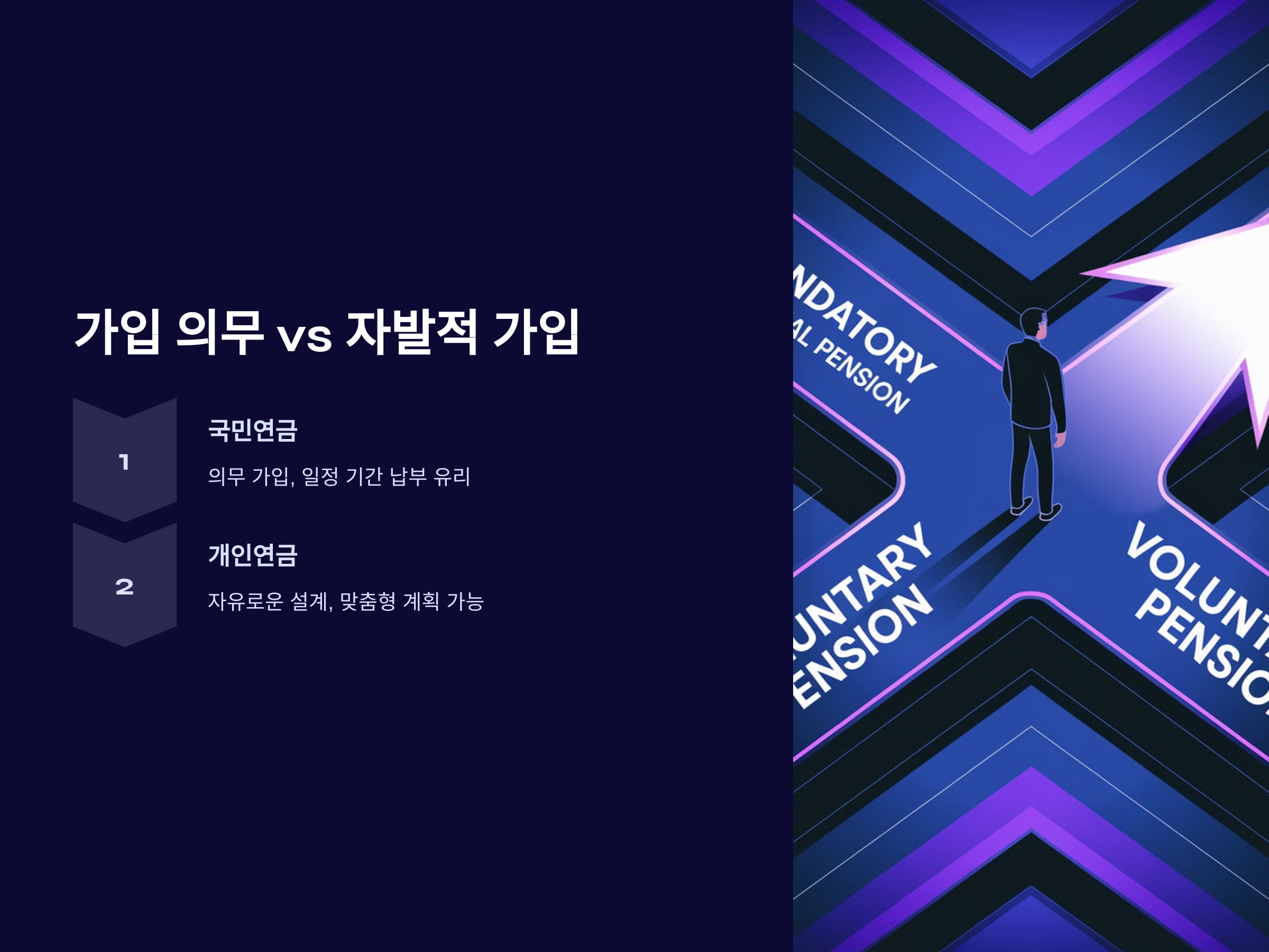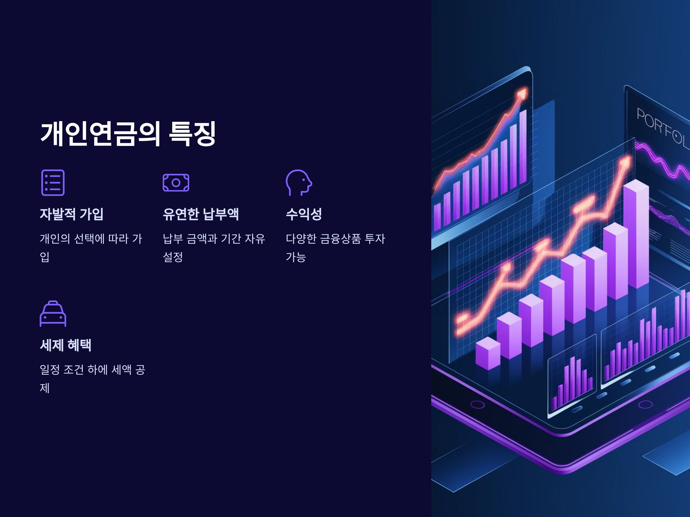 - 자발적 가입: 국민연금과 달리 개인의 선택에 따라 가입합니다.