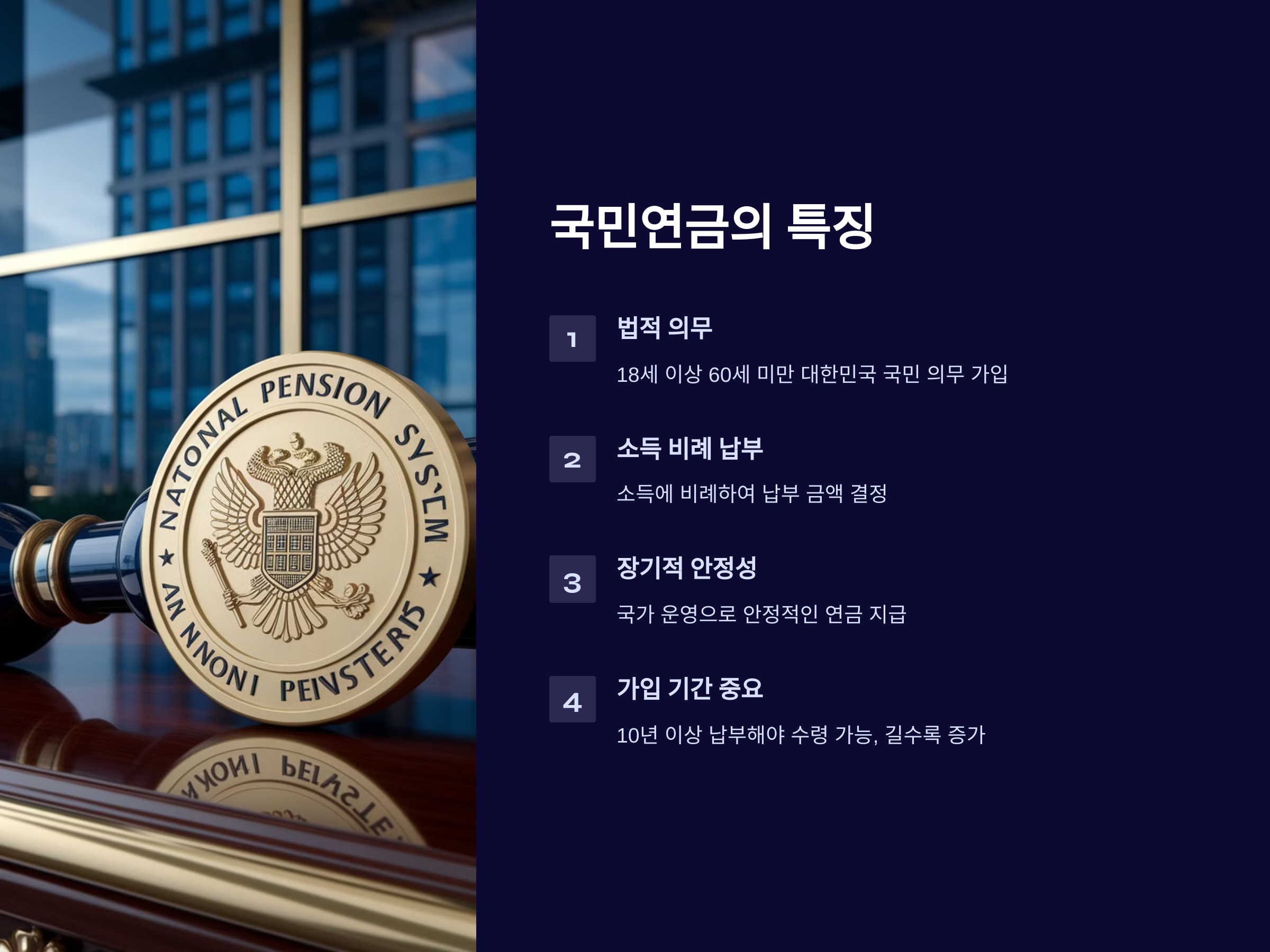 - 장기적 안정성: 국가에서 운영되기 때문에 장기적으로 안정적인 연금 지급이 이루어집니다.