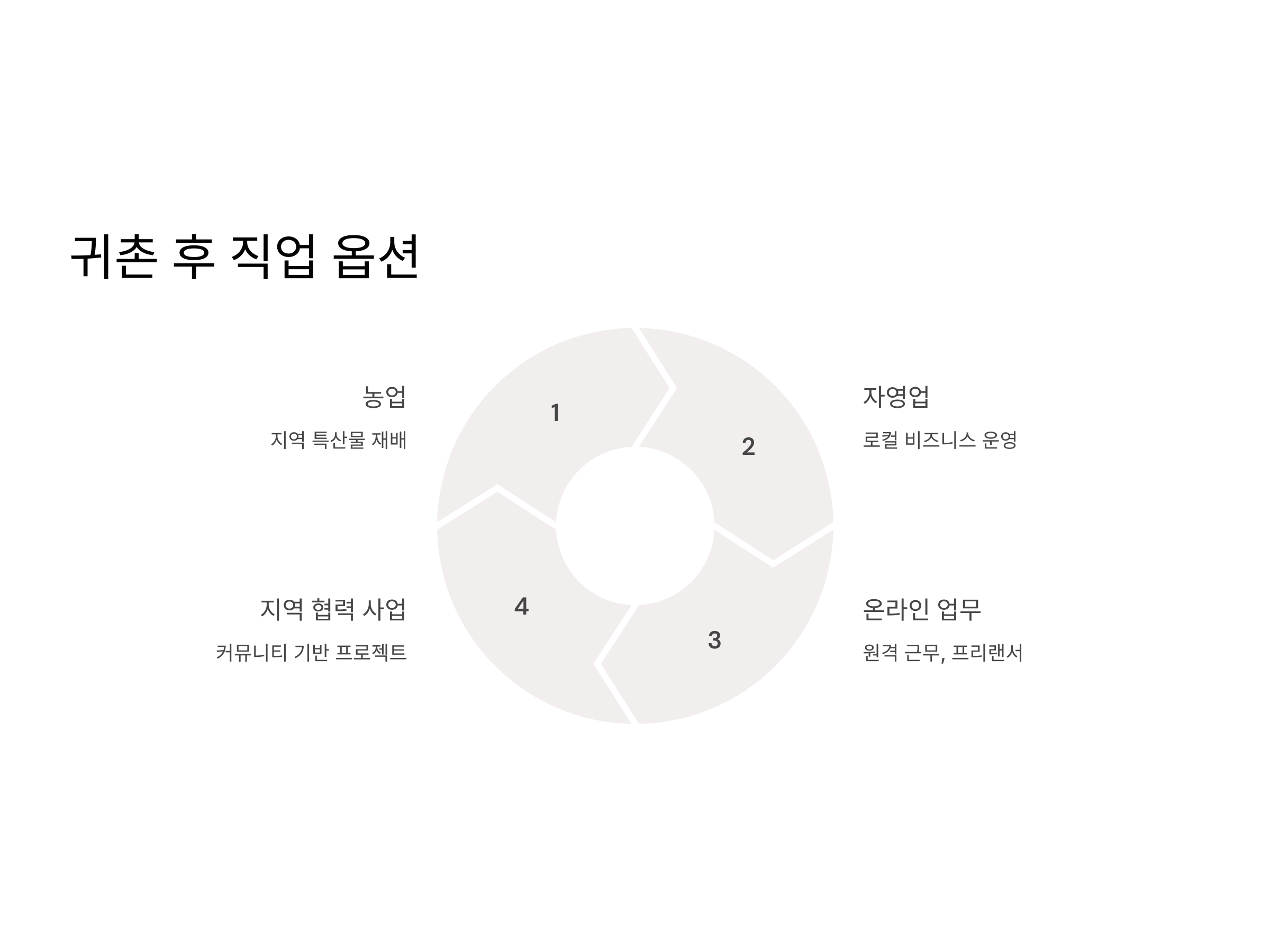 시골에서는 대부분 농업이나 자영업에 종사하는 경우가 많습니다. 특히 직업을 새롭게 찾아야 하는 경우, 지역의 산업 구조나 경제 상황을 면밀히 분석해야 합니다. 일부 귀촌자들은 자택에서 할 수 있는 온라인 업무나 창업을 통해 새로운 직업을 얻기도 합니다.