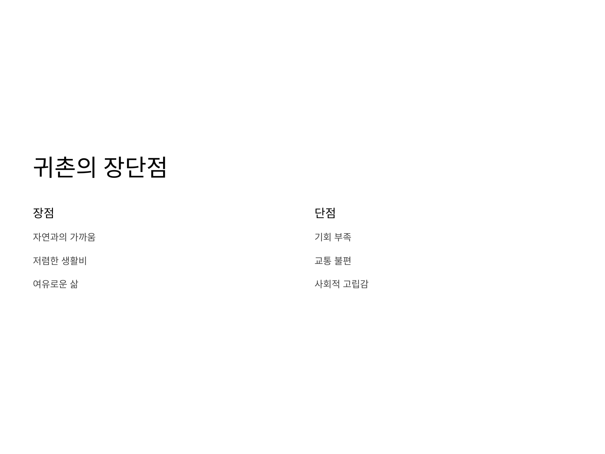 귀촌의 단점