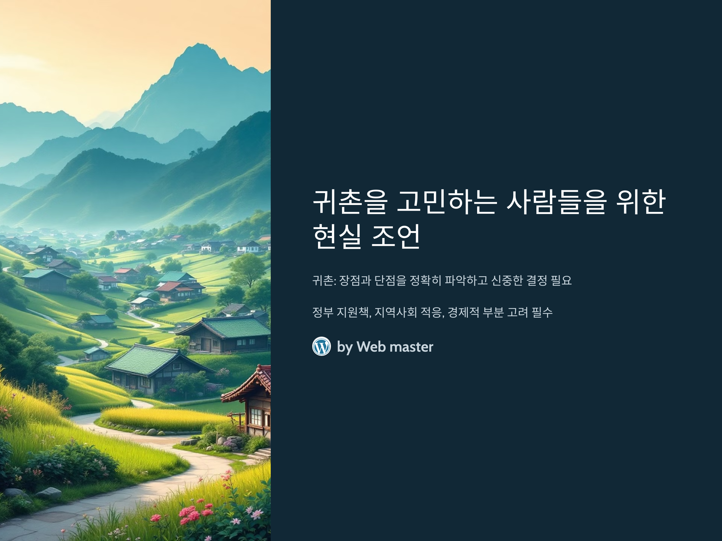 귀촌은 단순한 낭만이 아니라 현실적인 준비가 필요한 선택입니다. 충분한 사전 조사와 경제적 계획이 없다면 실패할 가능성이 큽니다. 하지만 올바른 준비와 현실적인 기대를 갖고 접근한다면, 새로운 삶의 기회를 찾을 수도 있습니다.