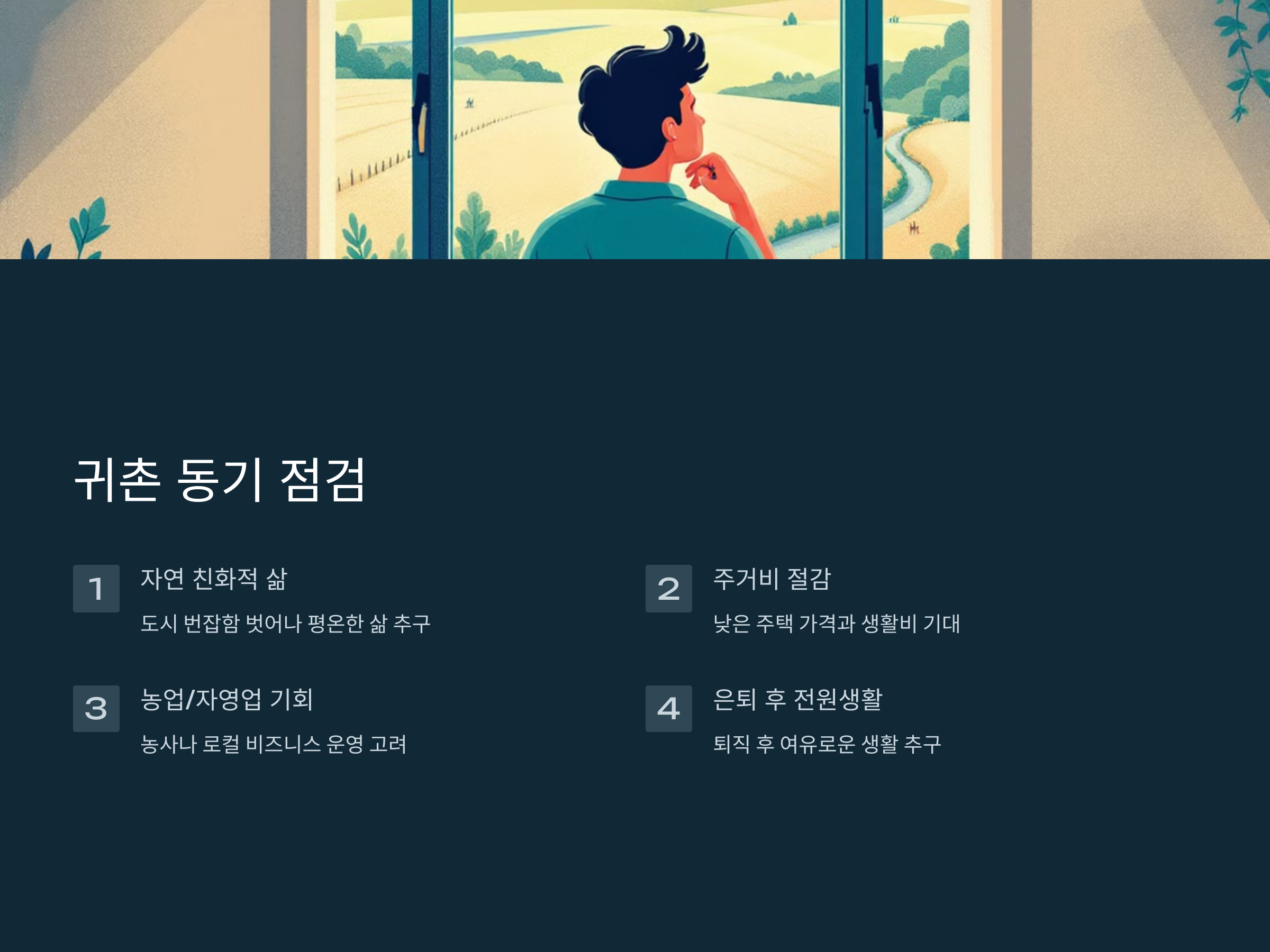 귀촌을 고려하는 가장 큰 이유는 다양한데, 보통 다음과 같은 동기에서 출발합니다.