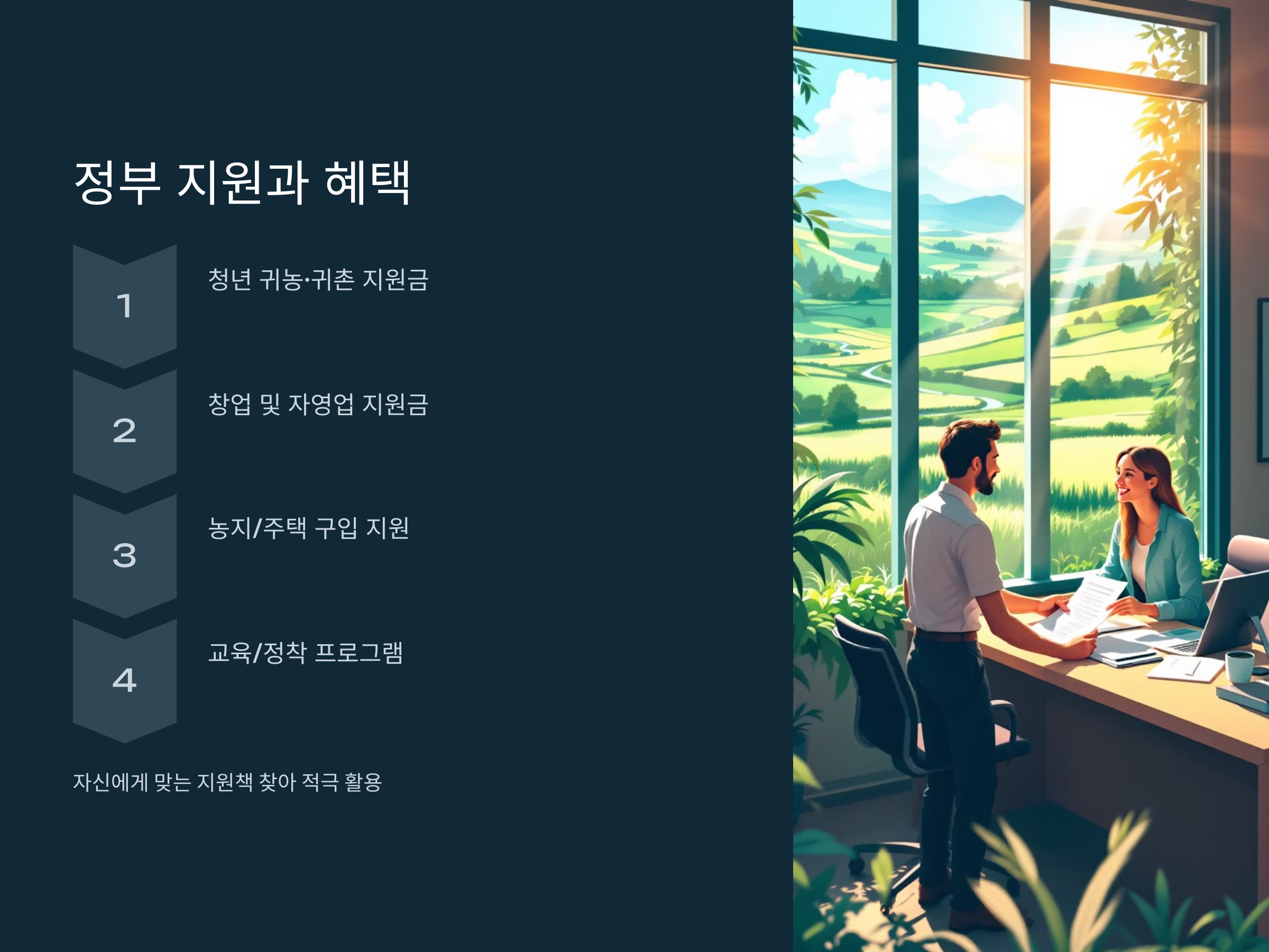 정부에서는 귀촌을 장려하기 위해 다양한 지원책을 제공하고 있습니다.