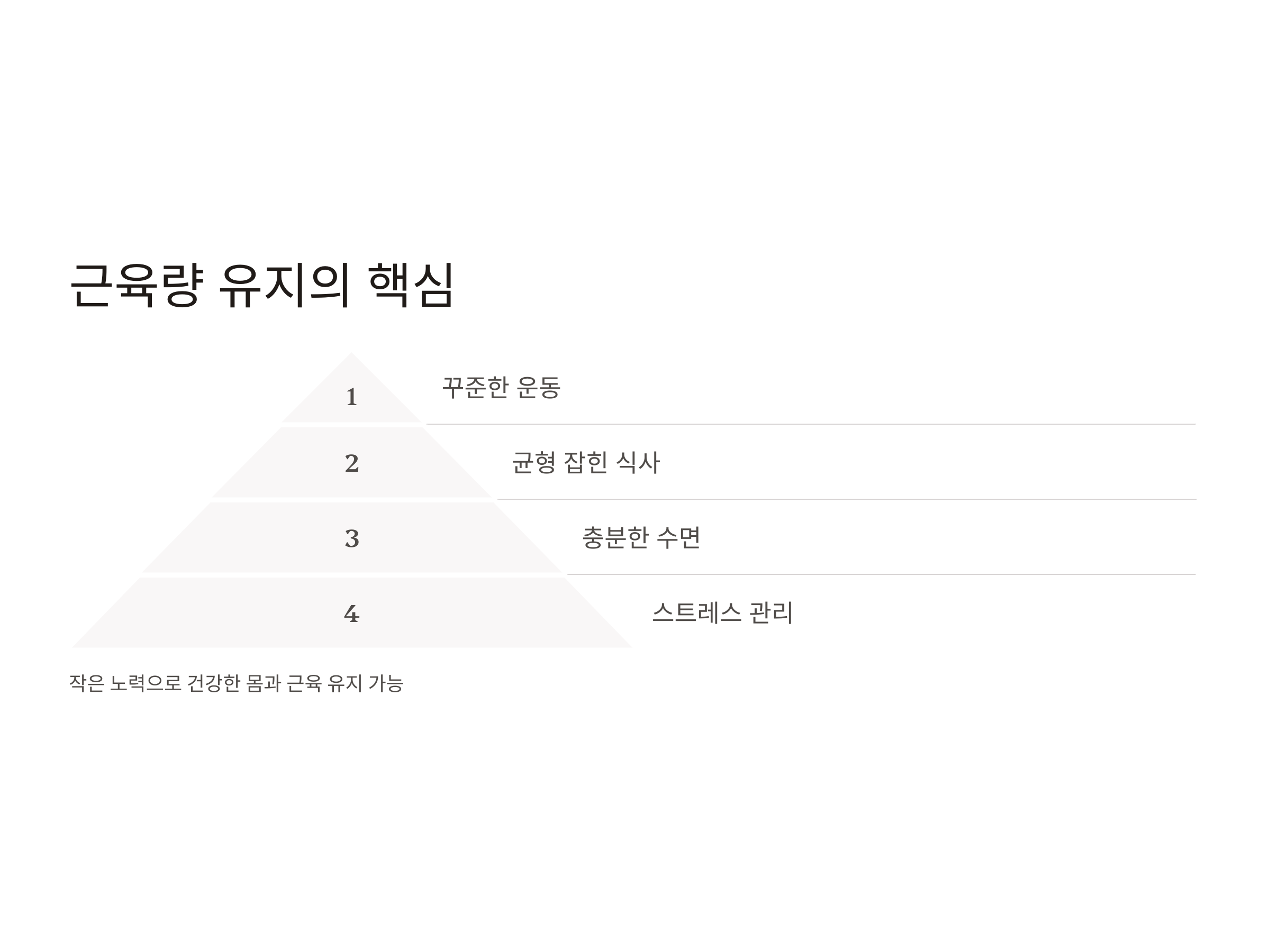 근육량을 유지하는 데 있어 중요한 점은 꾸준함과 균형입니다. 운동, 영양, 수면, 스트레스 관리까지 모두 조화를 이루면 근육을 오랫동안 유지할 수 있습니다. 이 글에서 소개한 방법들을 실천하면서 건강한 근육량을 유지해보세