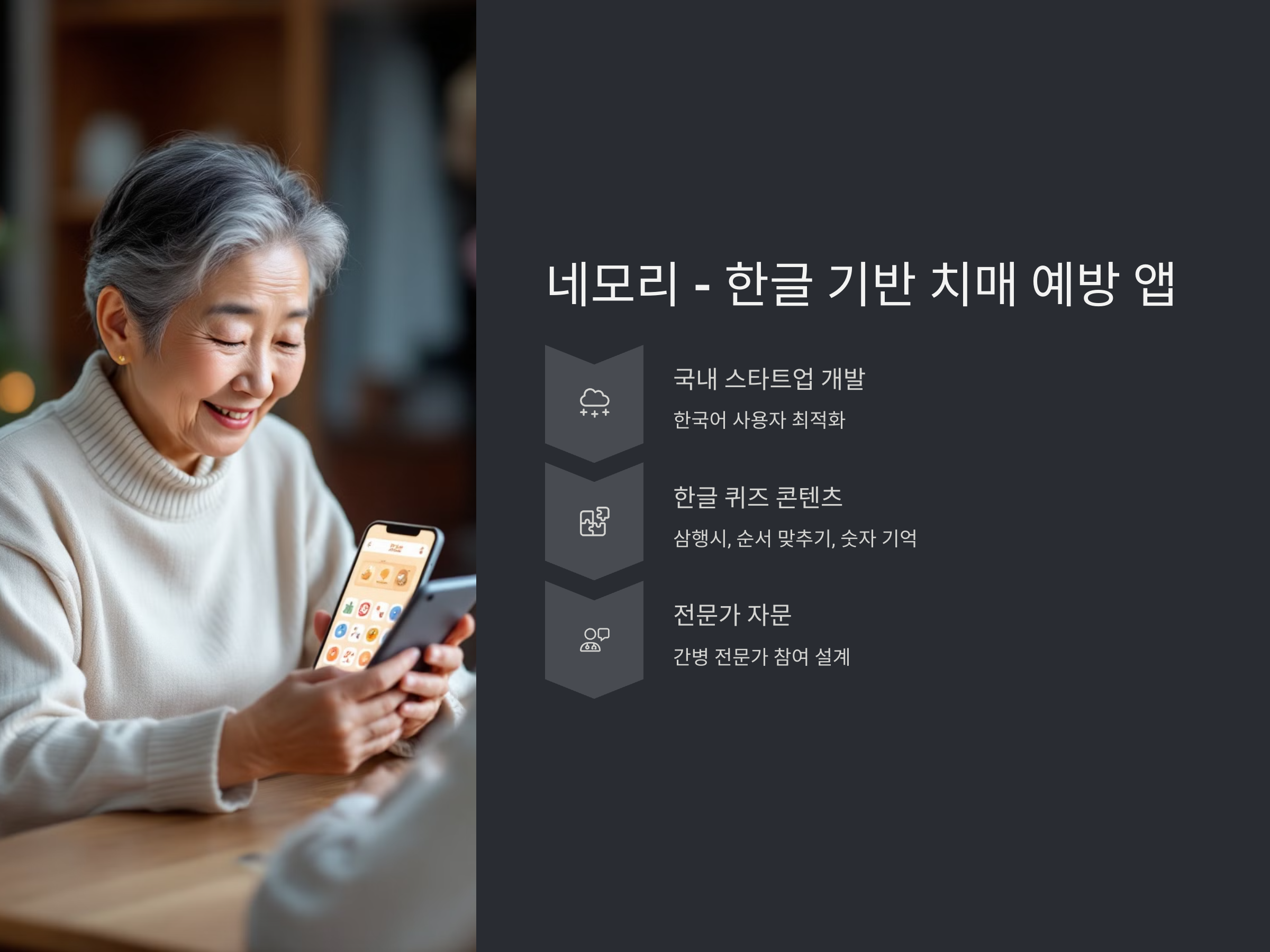 네모리(Nemore) – 국내 개발, 한글 기반 치매 예방 앱