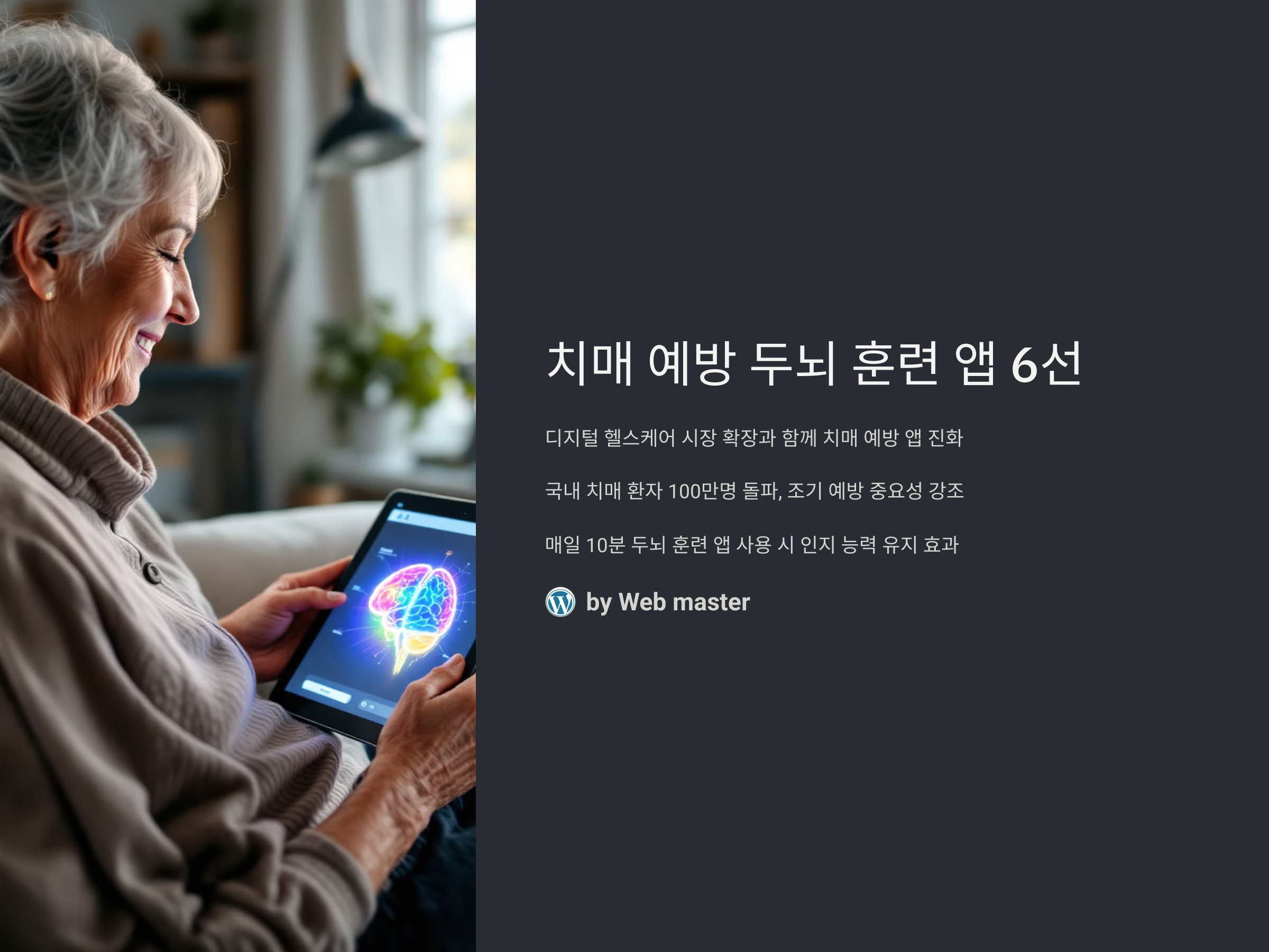 디지털 헬스케어 시장의 확장과 함께 치매 예방을 위한 두뇌 훈련 앱이 눈에 띄게 진화하고 있습니다. 2025년 기준, 국내 치매 환자 수는 100만 명을 넘어섰고, 조기 예방의 중요성이 어느 때보다 강조되고 있습니다. 특히 MCI(경도인지장애) 단계에서의 관리가 중요하다는 점에서, 일상 속 뇌 자극 활동이 큰 주목을 받고 있습니다. 최근 연구에 따르면, 매일 10분 이상 두뇌 훈련 앱을 활용한 그룹이 그렇지 않은 그룹에 비해 인지 능력 유지에 있어 더 뛰어난 결과를 보였습니다. 이런 흐름에 따라, 사용자 맞춤형 훈련 프로그램, 인공지능 기반 분석, 게임 요소 접목 등의 기능을 갖춘 앱들이 각광받고 있으며, 노년층도 손쉽게 사용할 수 있는 UI/UX 개선도 이루어지고 있습니다. 지금부터는 단순한 게임을 넘어, 과학적 근거와 데이터를 바탕으로 치매 예방 효과가 입증된 앱들을 소개합니다.