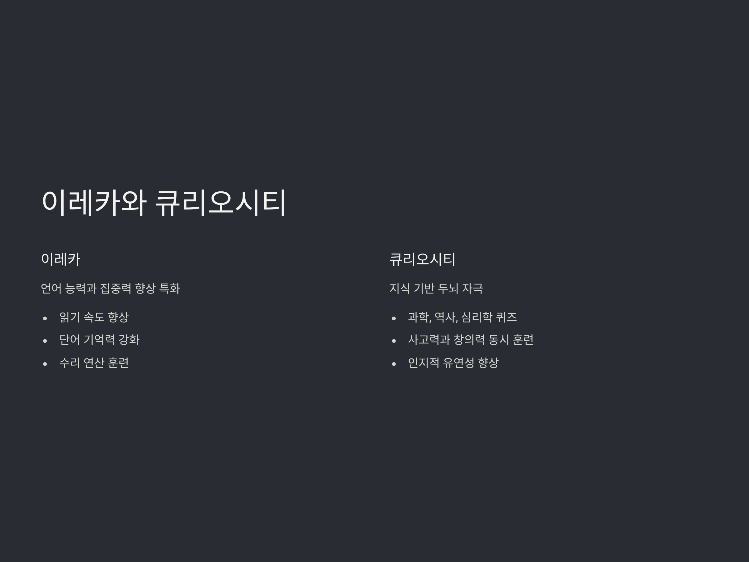 큐리오시티(Curiosity) – 뇌를 깨우는 지식 기반 훈련