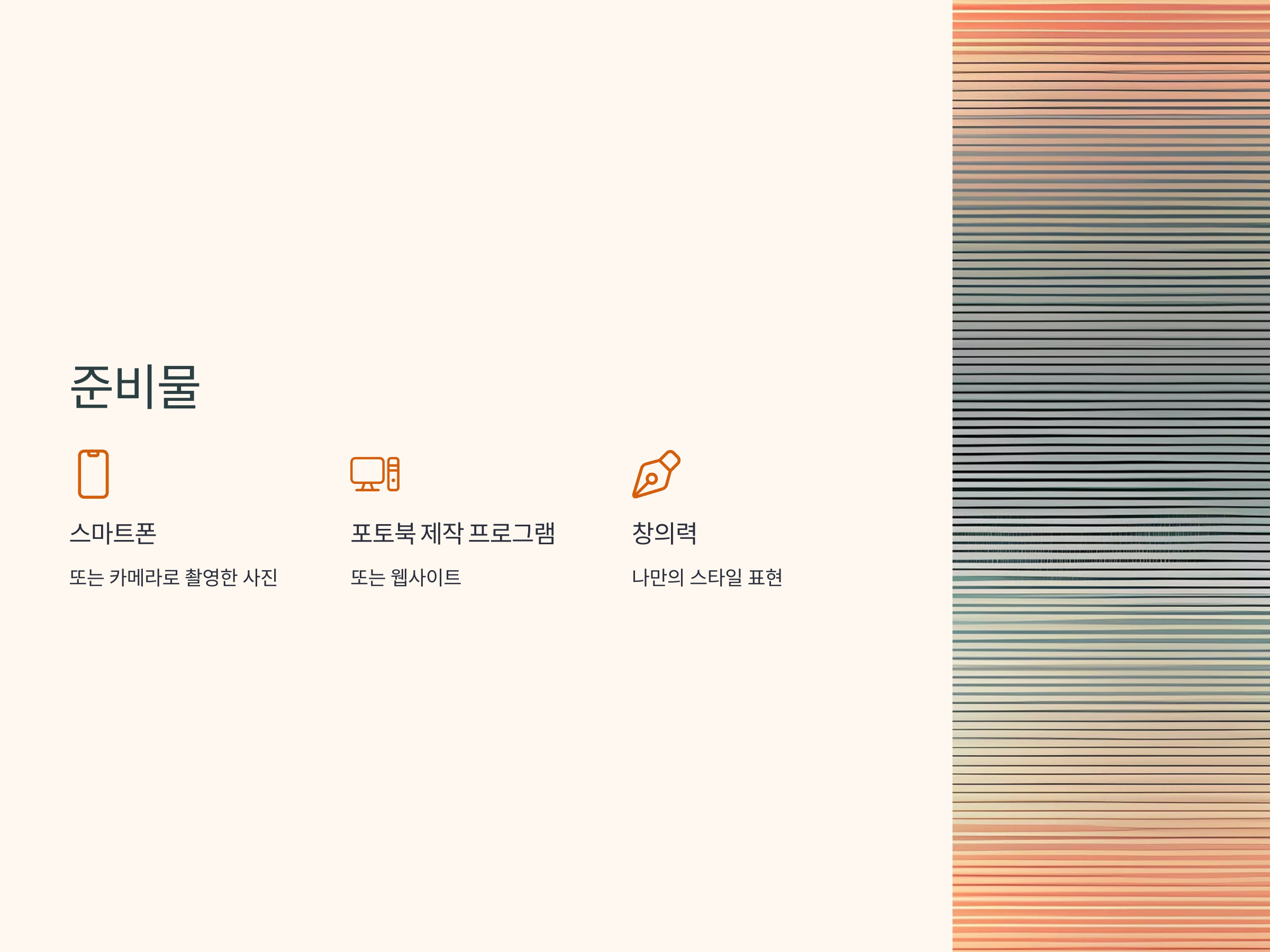 포토북을 만들기 위해 특별한 장비나 전문적인 기술은 필요하지 않습니다. 필요한 것은 바로 스마트폰이나 카메라로 촬영한 사진, 그리고 포토북을 제작할 수 있는 프로그램이나 웹사이트입니다. 이제 몇 가지 단계를 통해 나만의 포토북을 손쉽게 만들 수 있습니다.