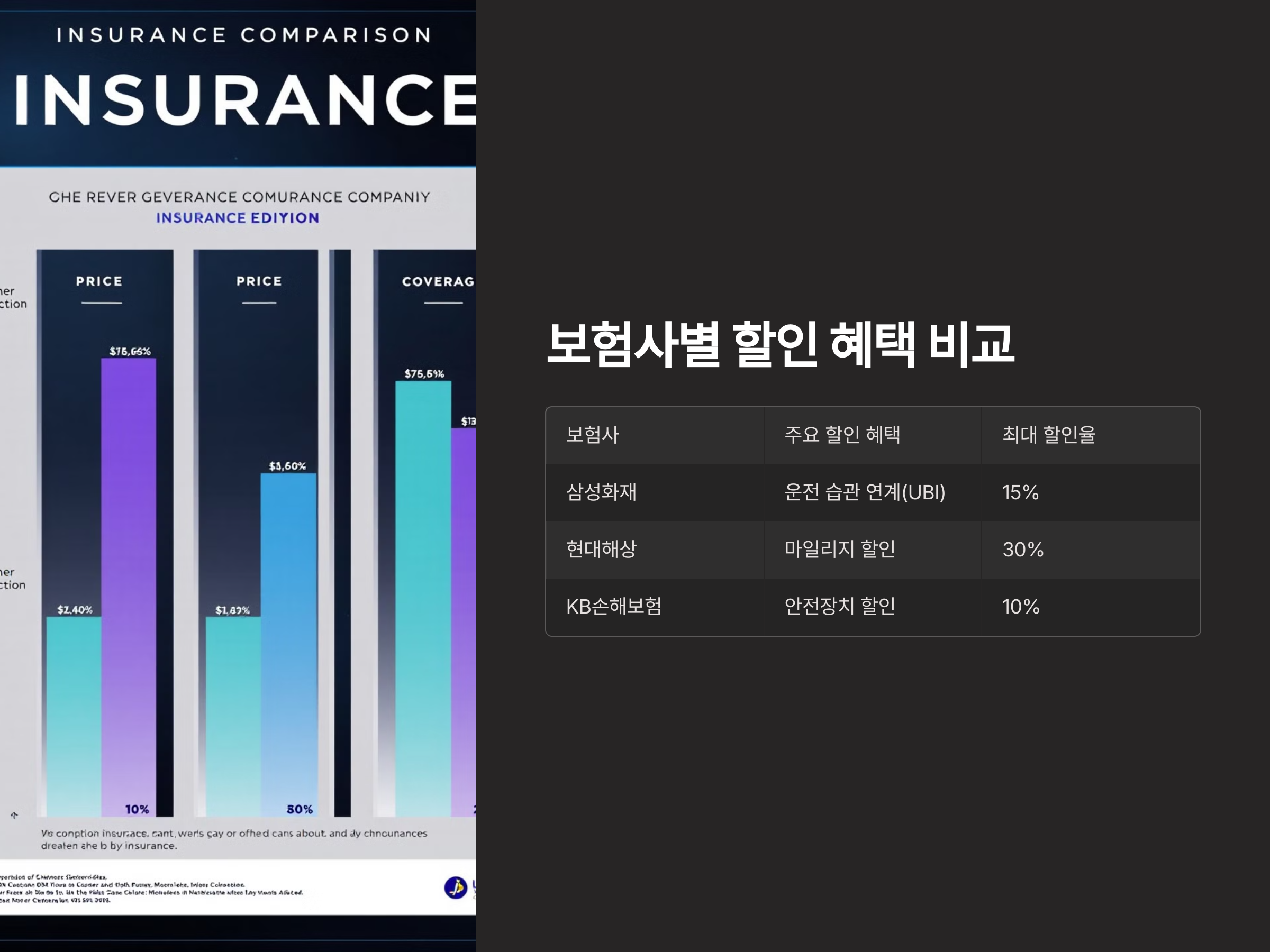 각 보험사는 다양한 할인 혜택과 특약을 제공하므로, 이를 비교하여 자신에게 가장 유리한 조건을 선택하는 것이 중요합니다. 예를 들어, 삼성화재는 운전 습관 연계(UBI) 할인으로 최대 15%의 할인을 제공하며, 현대해상은 마일리지 할인으로 최대 30%의 할인을 제공합니다. 이러한 정보를 바탕으로 자신의 운전 습관과 차량 특성에 맞는 보험사를 선택하는 것이 현명한 전략입니다. 이를 위해 여러 보험사의 견적을 비교하고, 각자의 상황에 맞는 최적의 보험을 선택하는 것이 중요합니다.