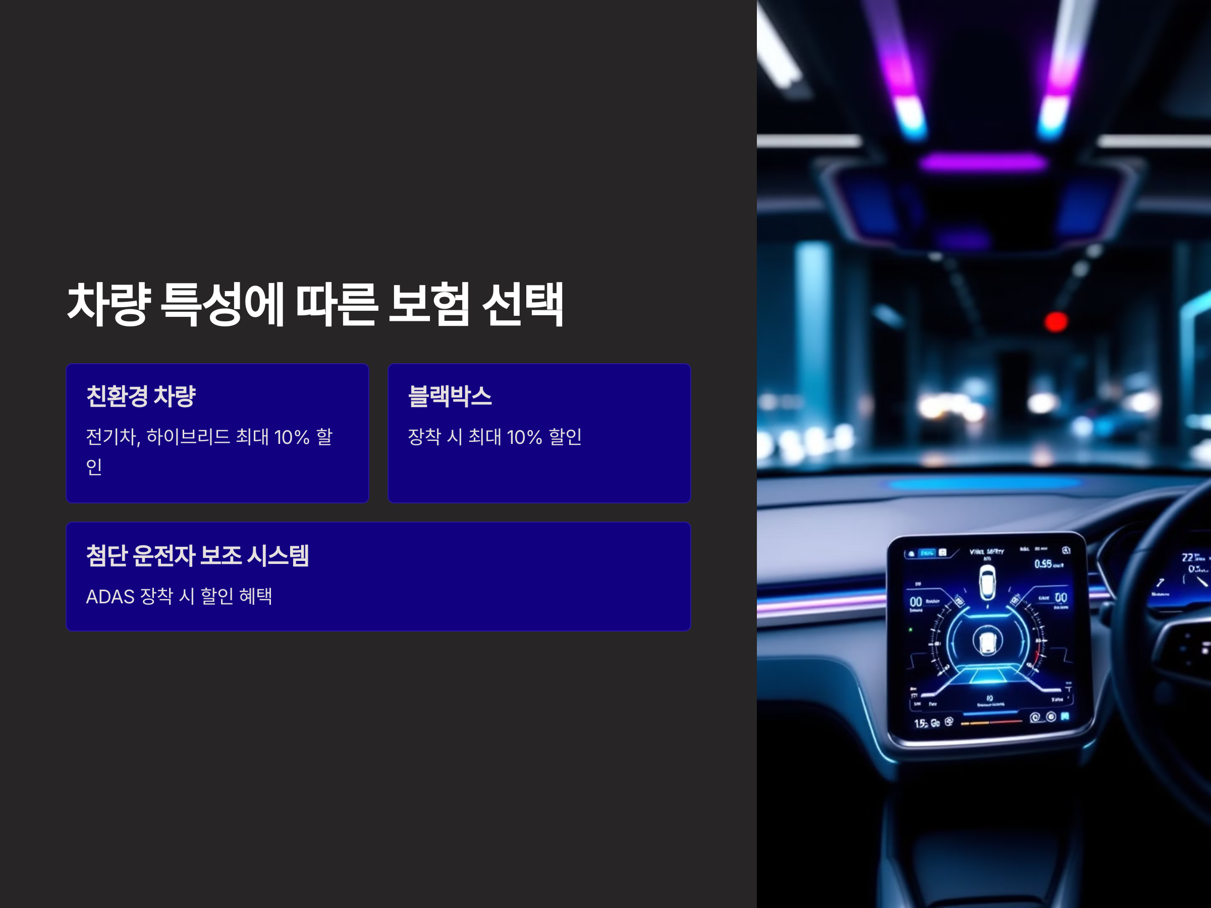 차량 특성에 따른 보험 선택: 친환경 차량과 안전 장치