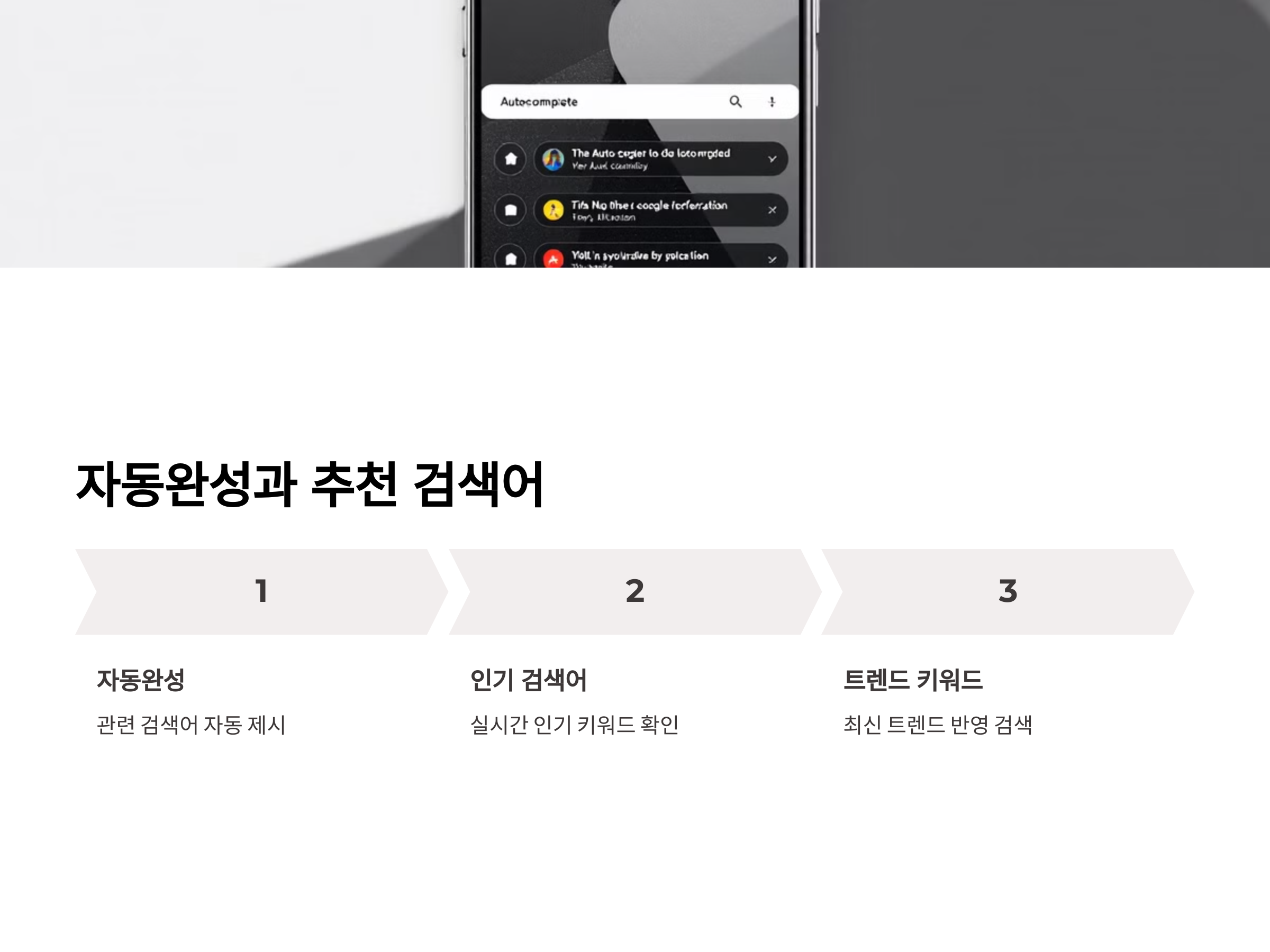 - 자동완성 기능: 키워드를 입력하면 관련 검색어가 자동으로 제시됩니다.