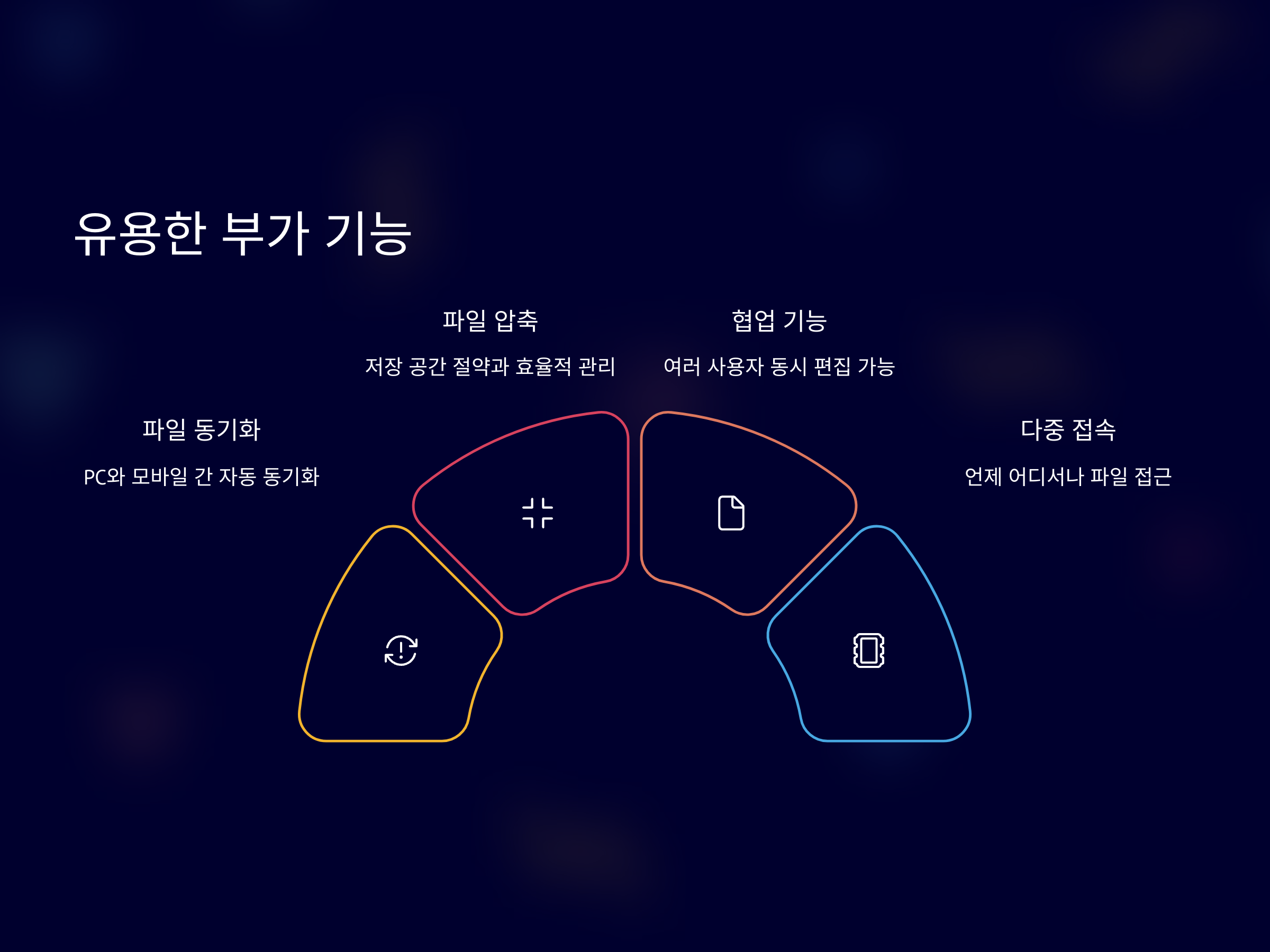 - 파일 동기화: PC와 모바일에서 파일을 자동으로 동기화하여 최신 파일을 항상 확인할 수 있습니다.