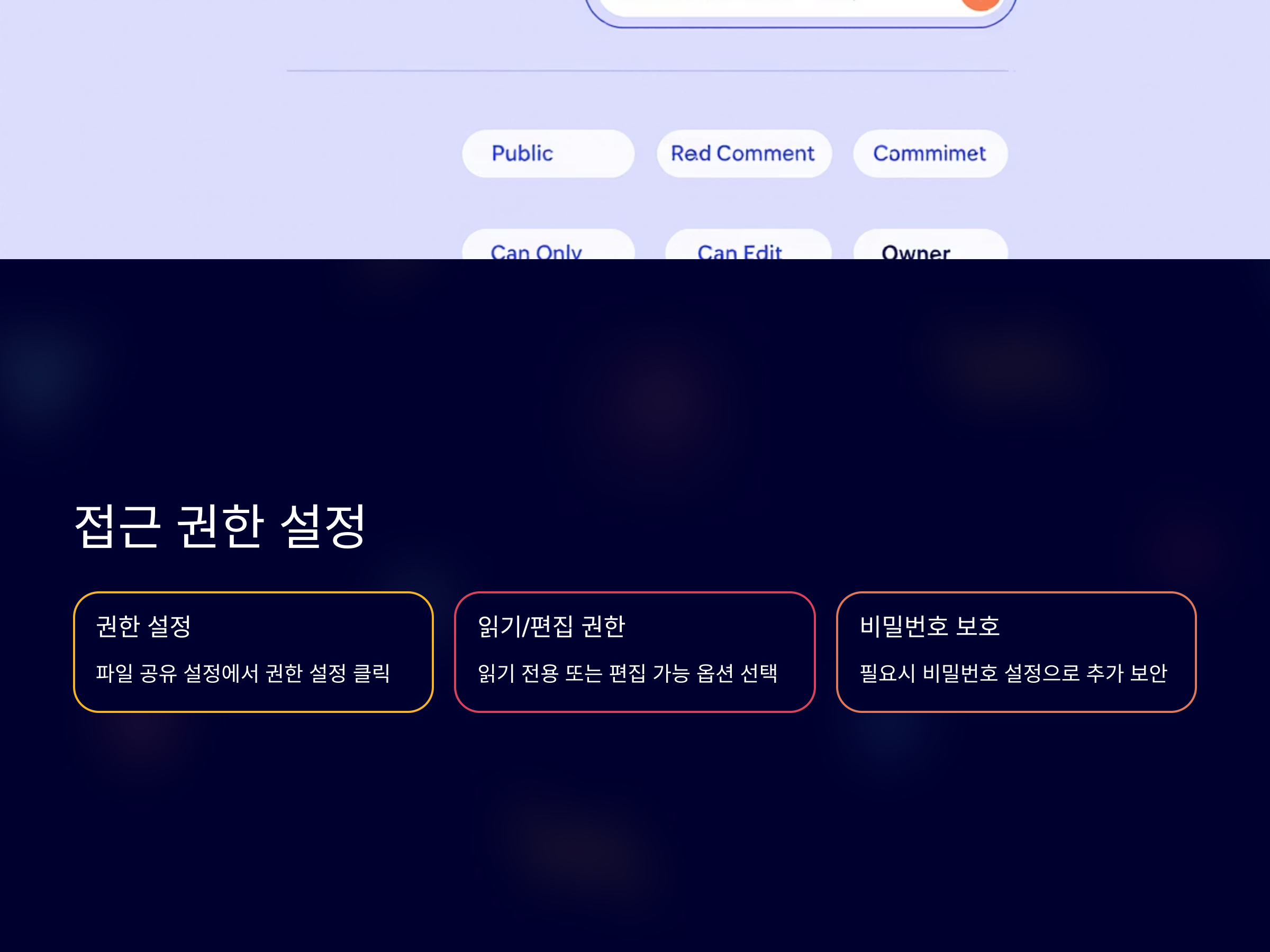 - 추가적으로, 파일에 대한 권한 설정을 통해, 수정 및 다운로드 권한을 조정할 수 있습니다. 권한을 설정하면 더 안전하게 파일을 공유할 수 있습니다.