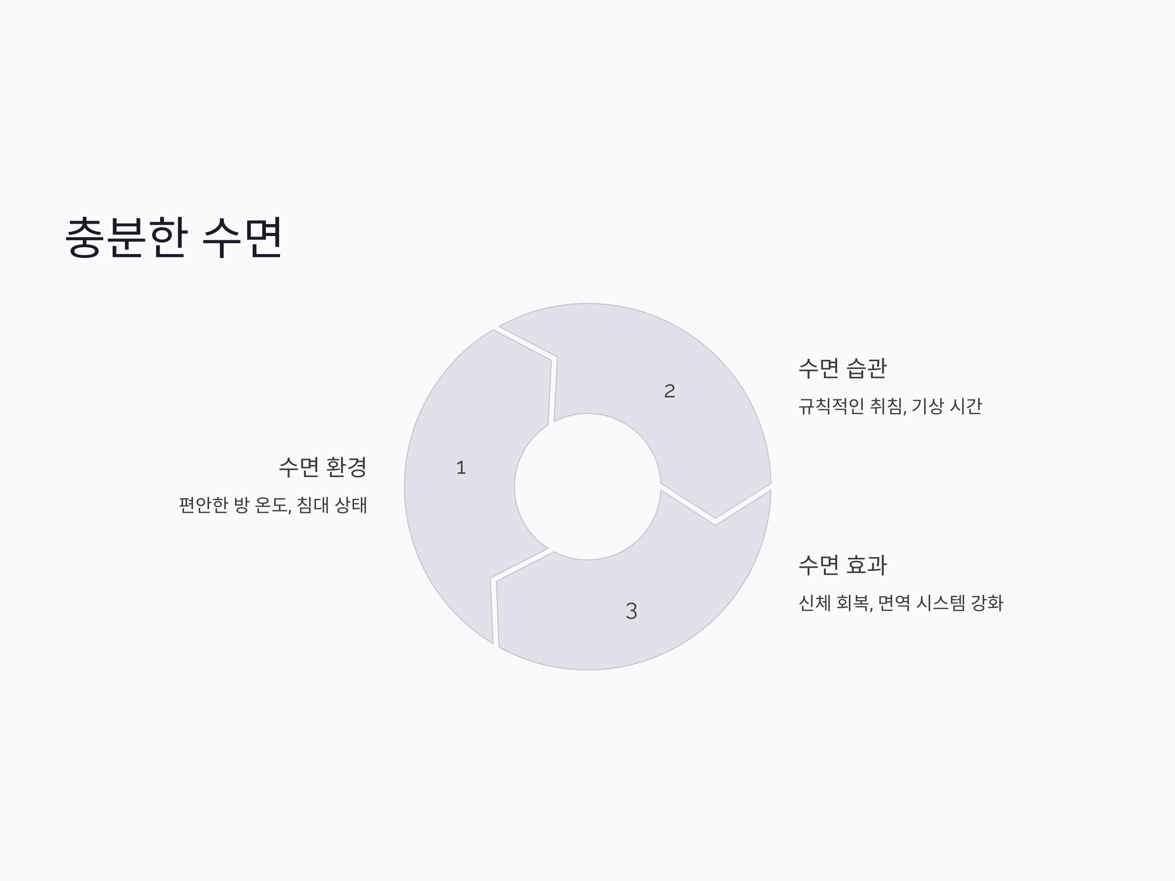 수면은 신체 회복의 시간입니다. 잠을 자는 동안 뇌는 기억을 정리하고, 신체는 세포를 재생하며, 면역 시스템도 강화됩니다. 노년기에도 충분한 수면을 취함으로써 건강을 유지할 수 있습니다.
