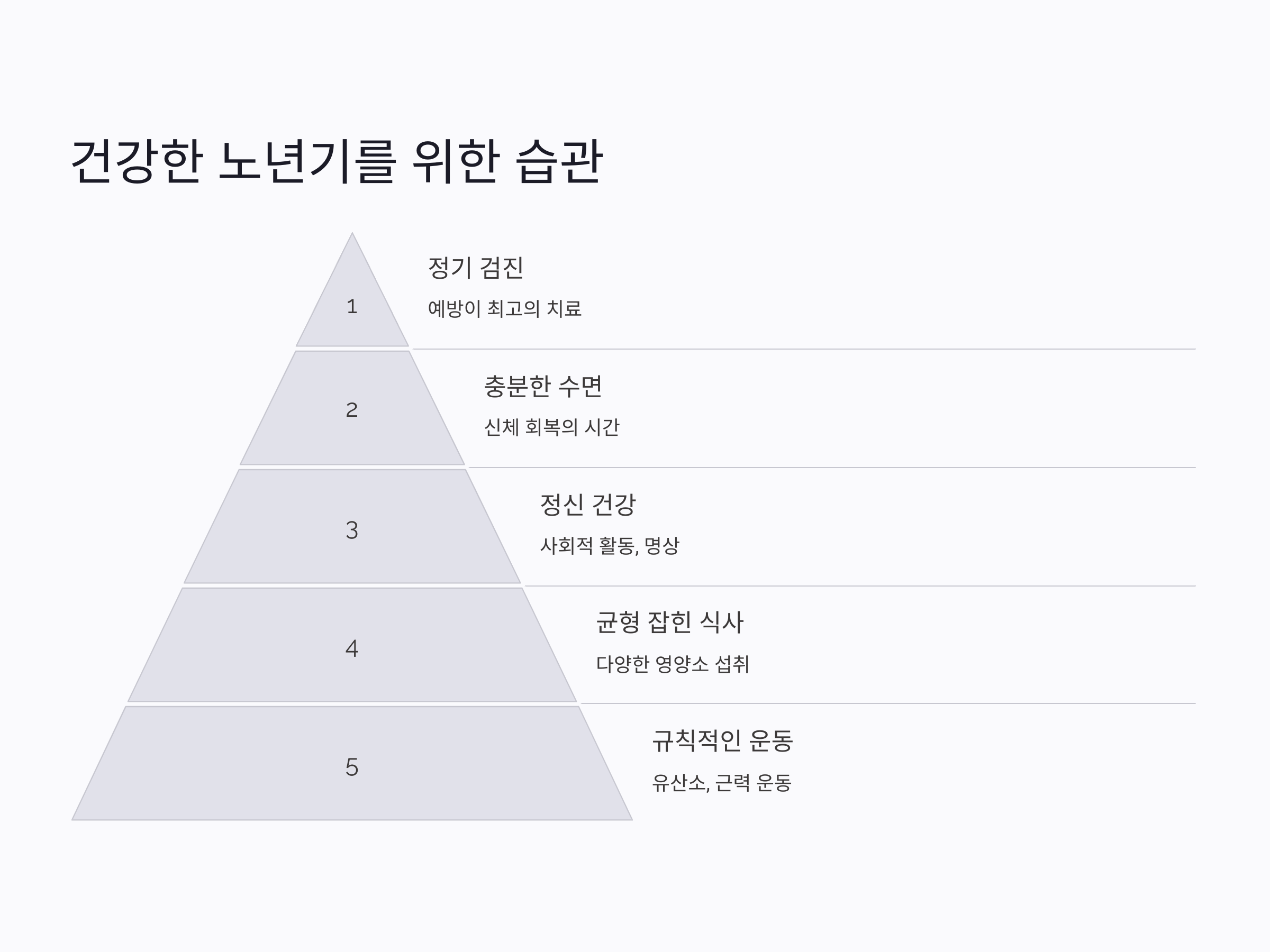 노년기에도 건강을 유지하는 것은 단순히 나이를 거슬러 올라가는 것이 아니라, 더 나은 삶을 위한 중요한 과정입니다. 적절한 운동, 균형 잡힌 식사, 그리고 정신 건강을 관리하는 방법 등 다양한 측면에서의 습관들이 유기적으로 작용하여, 노년기의 건강을 지키는 데 큰 도움을 줍니다. 그렇다면 어떤 습관들이 노년기 건강 유지에 필수적인지 알아보겠습니다. 이 글을 통해 노년기에도 건강을 유지할 수 있는 최고의 습관들을 함께 확인해보세요.