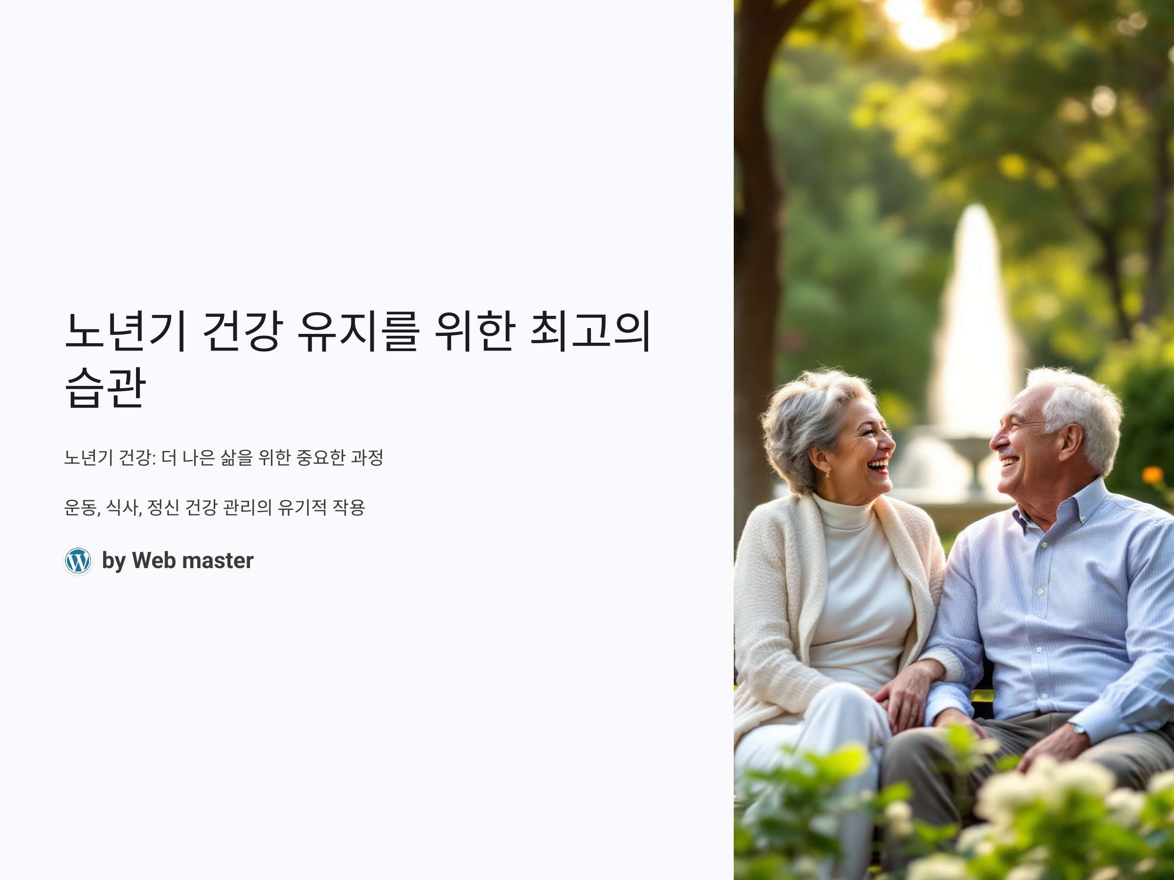 노년기 건강을 유지하기 위한 습관들은 특별한 기술이나 복잡한 방법이 아니라, 일상적인 작은 노력에서 시작됩니다. 지금부터라도 꾸준히 실천하면, 건강하고 활기찬 노후를 보낼 수 있을 것입니다. 여러분도 오늘부터 건강한 습관을 시작해보세요.