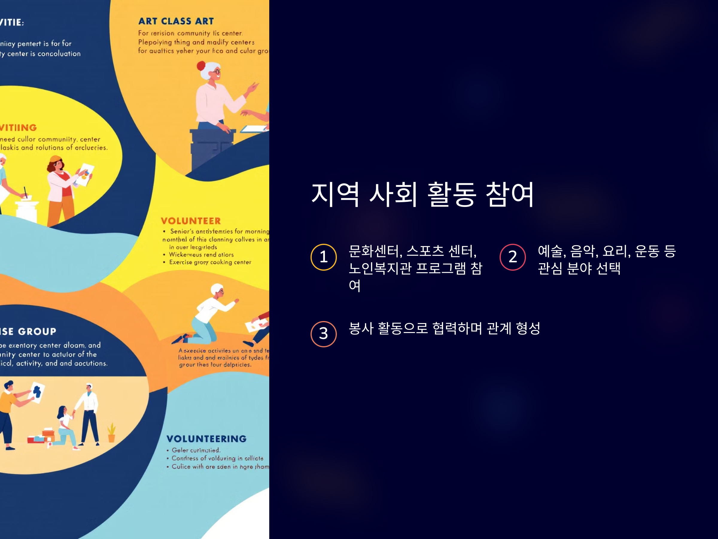 1. 지역 사회 센터나 문화 프로그램 참여