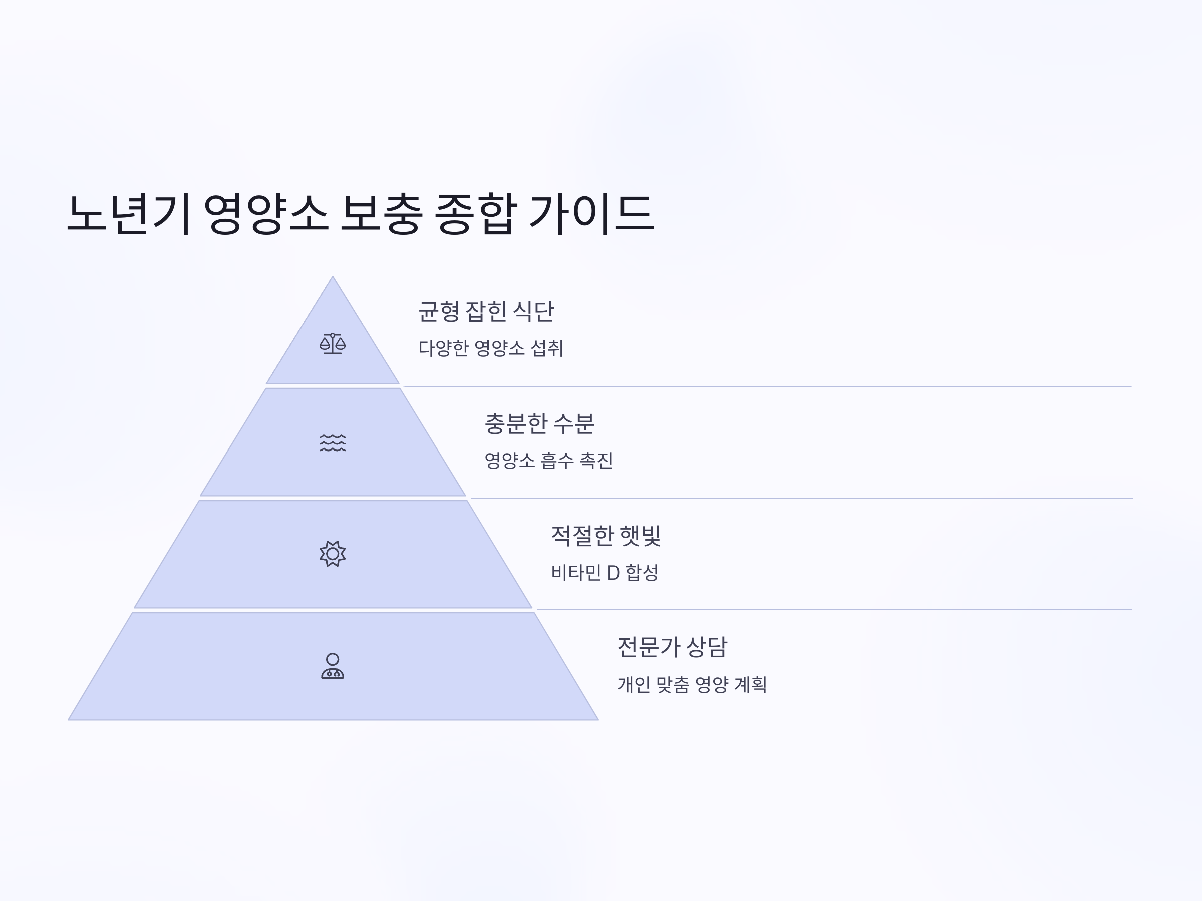 비타민 D는 칼슘의 흡수를 돕고, 뼈의 건강을 유지하는 데 중요한 역할을 합니다. 또한, 면역 체계를 지원하여 감염 예방에도 도움을 줍니다. 노년기에는 피부의 비타민 D 합성 능력이 떨어지기 때문에 음식으로 충분히 섭취해야 합니다.