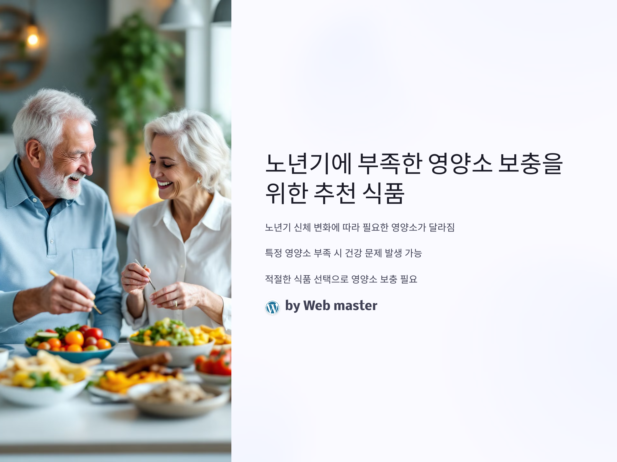 노년기에 접어들면서 신체의 다양한 변화가 일어나고, 이에 따라 필요한 영양소의 양이 달라집니다. 이러한 변화에 적절히 대응하지 않으면 여러 가지 건강 문제가 발생할 수 있습니다. 특히 노년기에는 특정 영양소가 부족해질 가능성이 높아지므로, 이를 보충하기 위한 식품을 알아보는 것이 중요합니다. 여기에서는 노년기에 자주 부족할 수 있는 영양소와 이를 보충할 수 있는 추천 식품들을 소개합니다.
