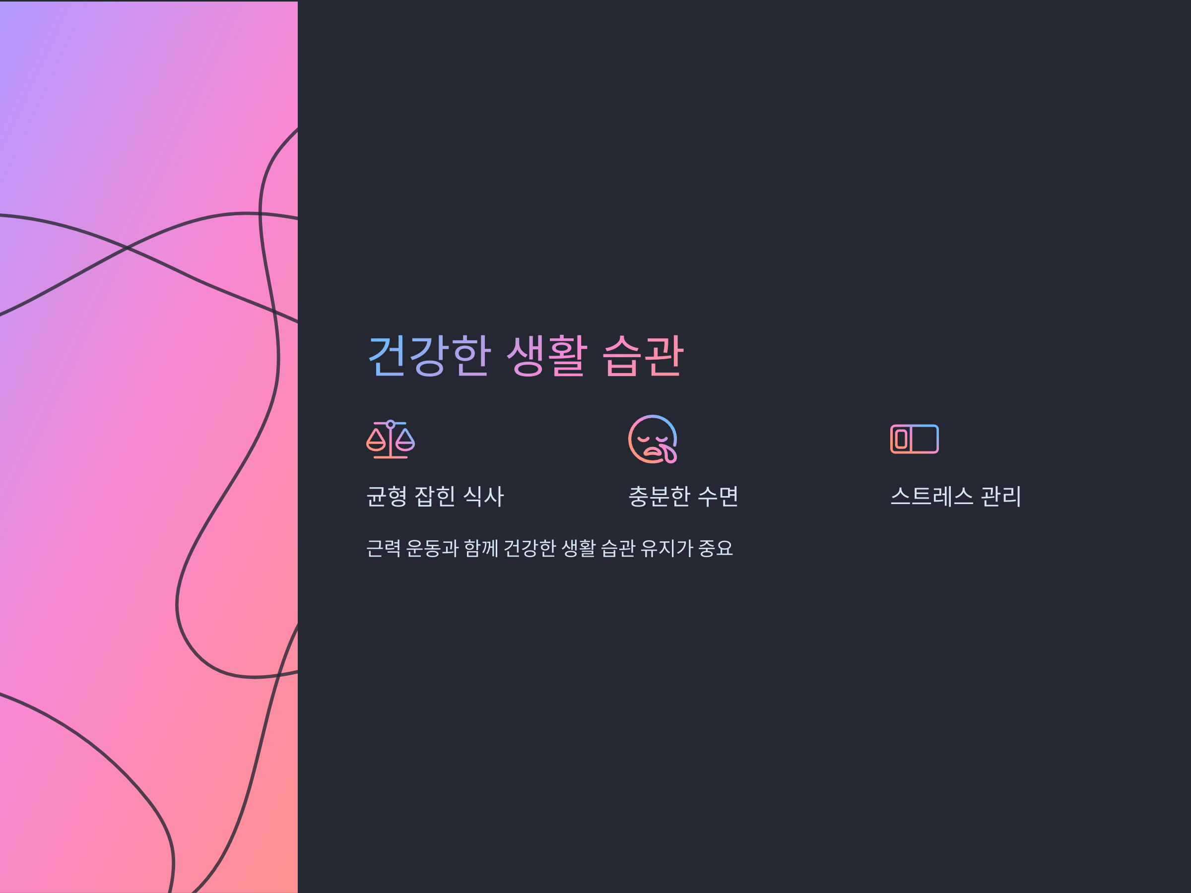 - 스트레스 관리: 운동 외에도 명상이나 취미 활동을 통해 스트레스를 관리하는 것이 중요합니다.