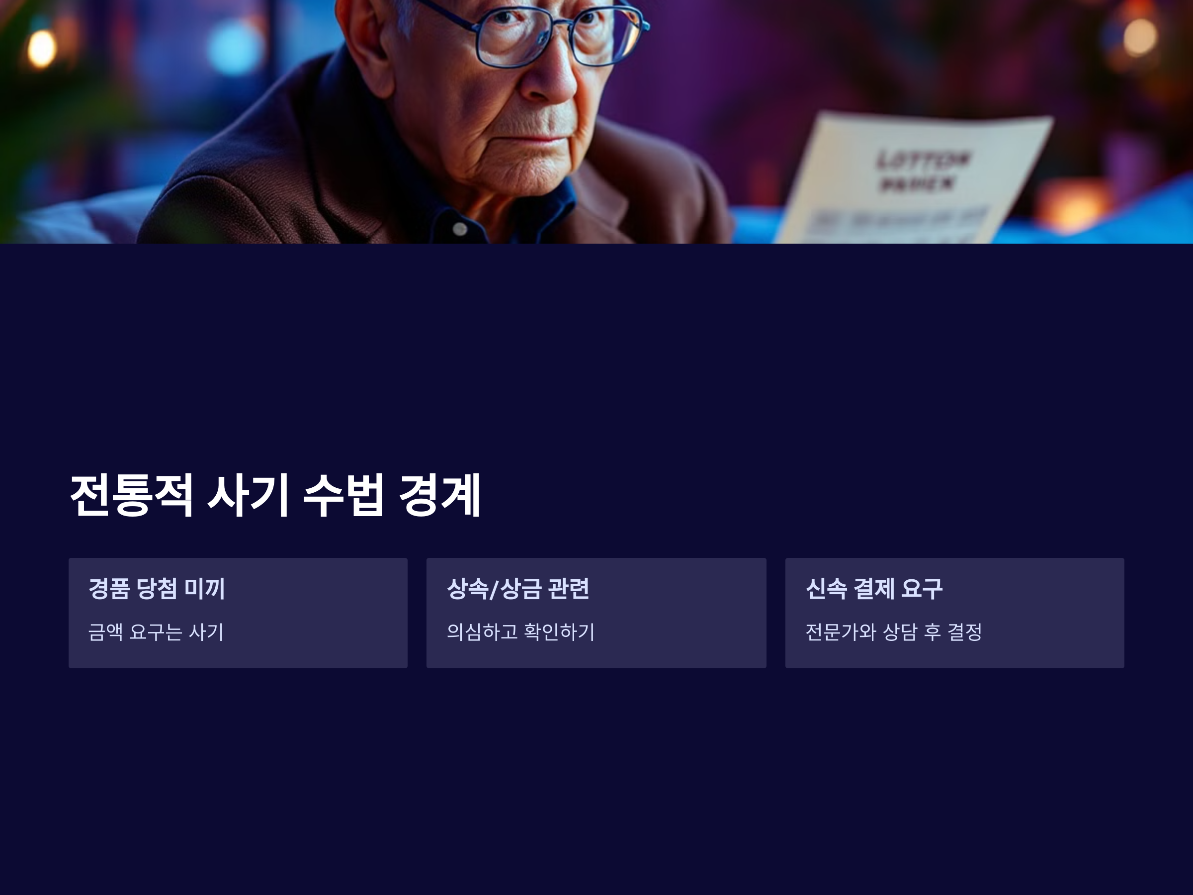 - "상속"이나 "상금"과 관련된 요청을 받았다면 의심해야 합니다.