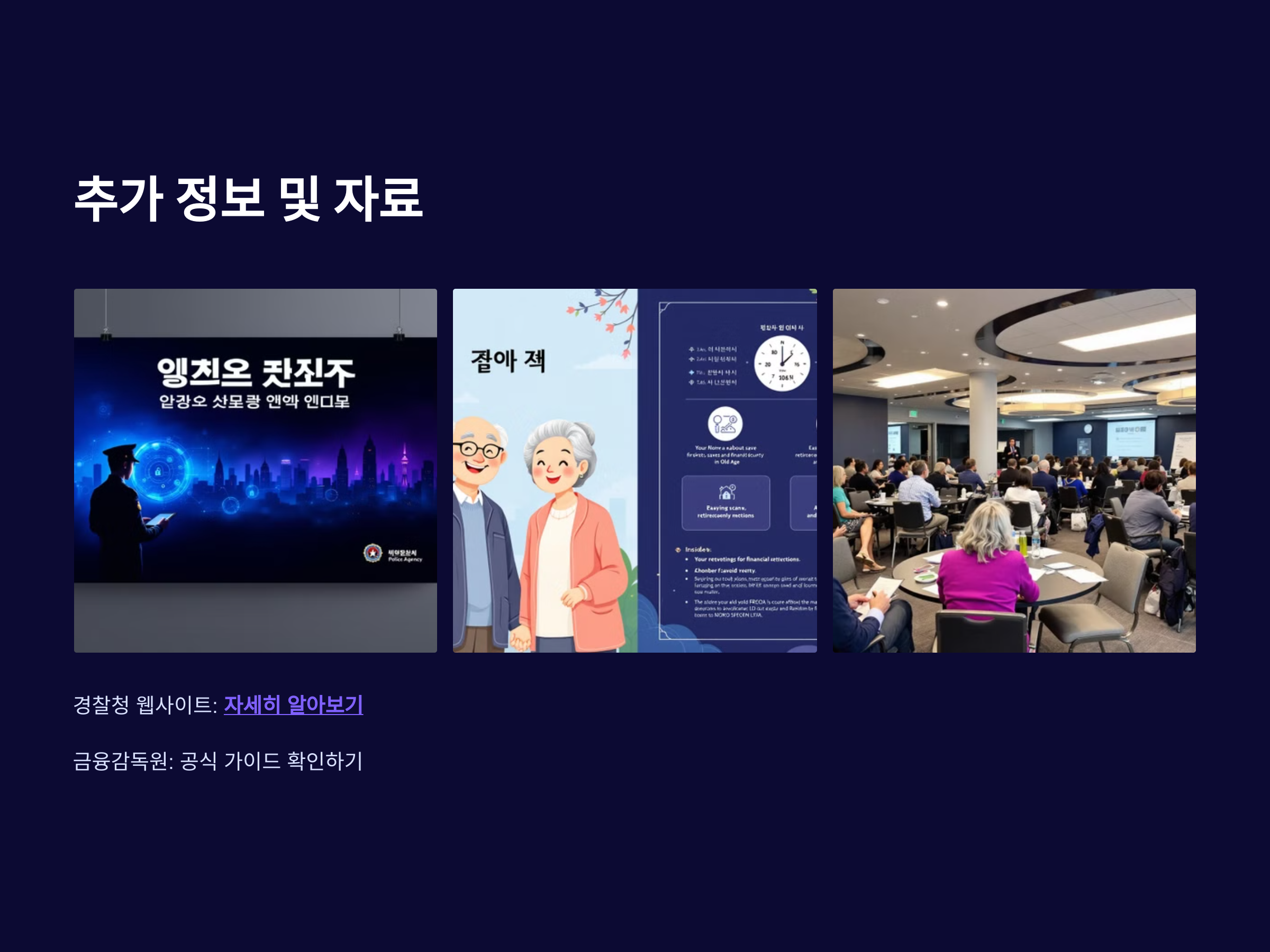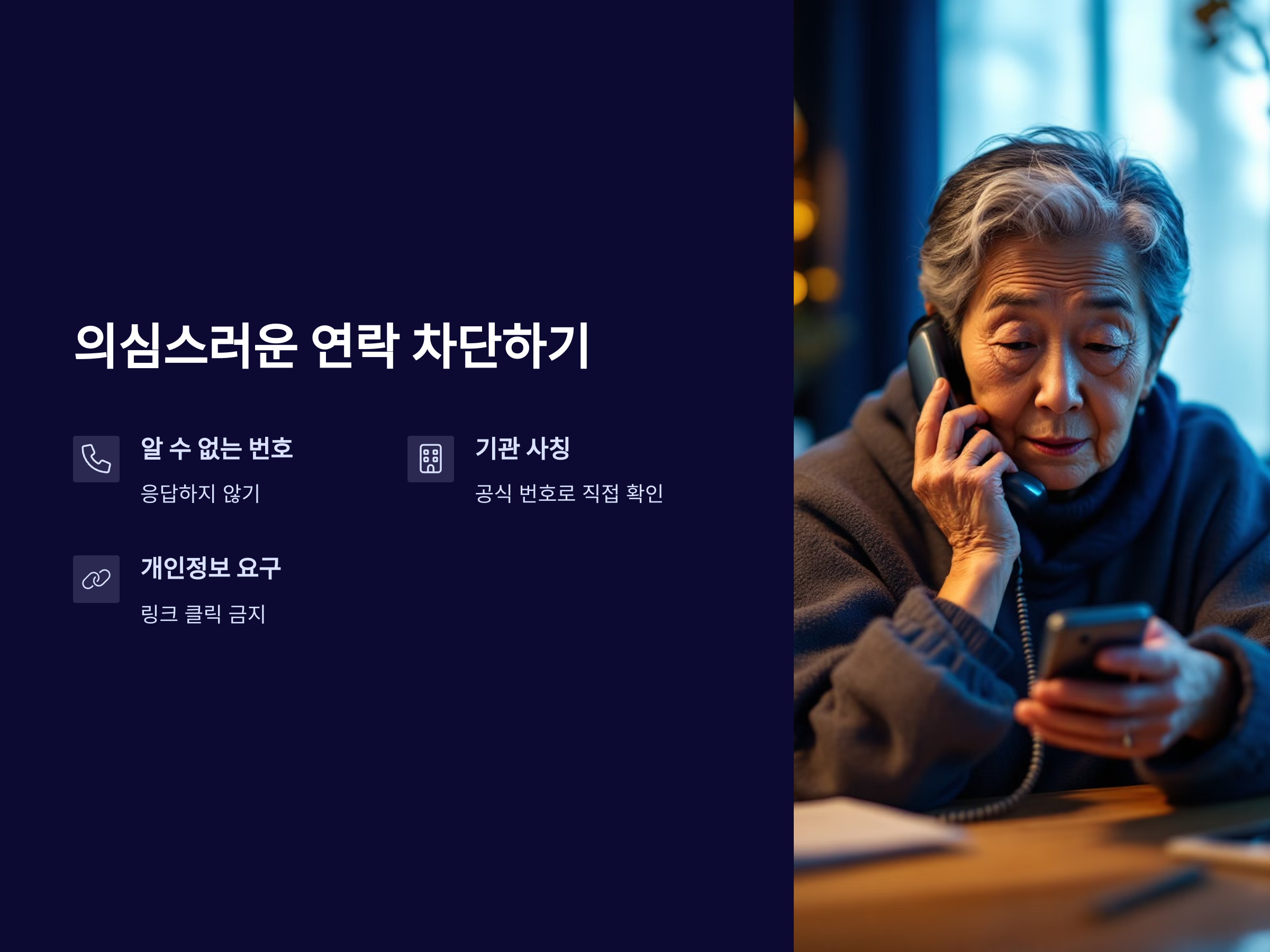 - 만약 정부 기관이나 금융 기관을 사칭한 전화일 경우, 해당 기관의 공식 전화번호로 직접 연락하여 사실 여부를 확인합니다.