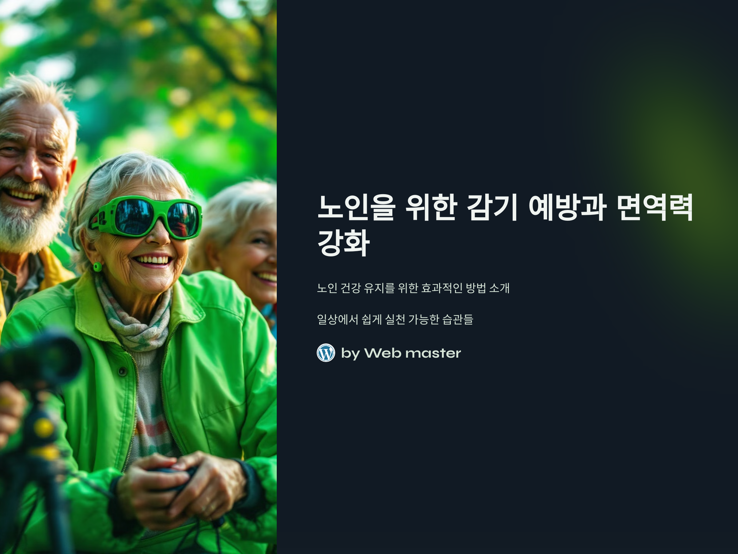 이번 포스팅에서는 노인을 위한 감기 예방 방법과 면역력 강화를 위한 효과적인 습관을 제시하여, 노인의 건강을 지킬 수 있는 방법을 알아보겠습니다. 일상에서 실천할 수 있는 방법을 소개하므로 누구나 쉽게 적용할 수 있습니다. 감기를 예방하고, 건강한 삶을 유지하려는 노인분들에게 유익한 정보가 될 것입니다.