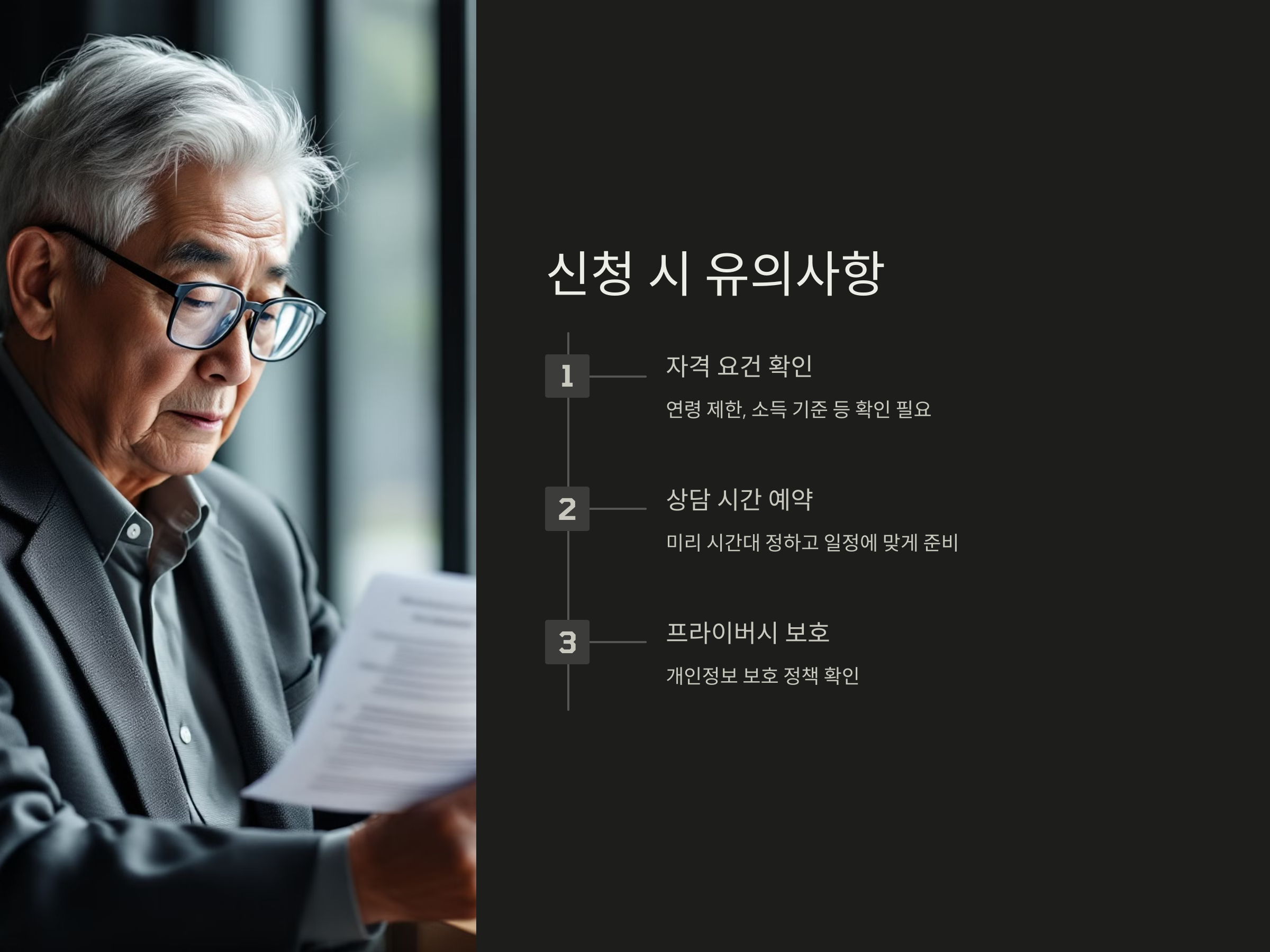 일부 서비스는 특정 조건을 충족해야만 신청할 수 있는 경우가 있습니다. 예를 들어, 일정 연령 이상의 노인만 신청이 가능하거나, 저소득층만 지원되는 경우가 있으므로, 신청 전에 자격 요건을 반드시 확인해야 합니다.