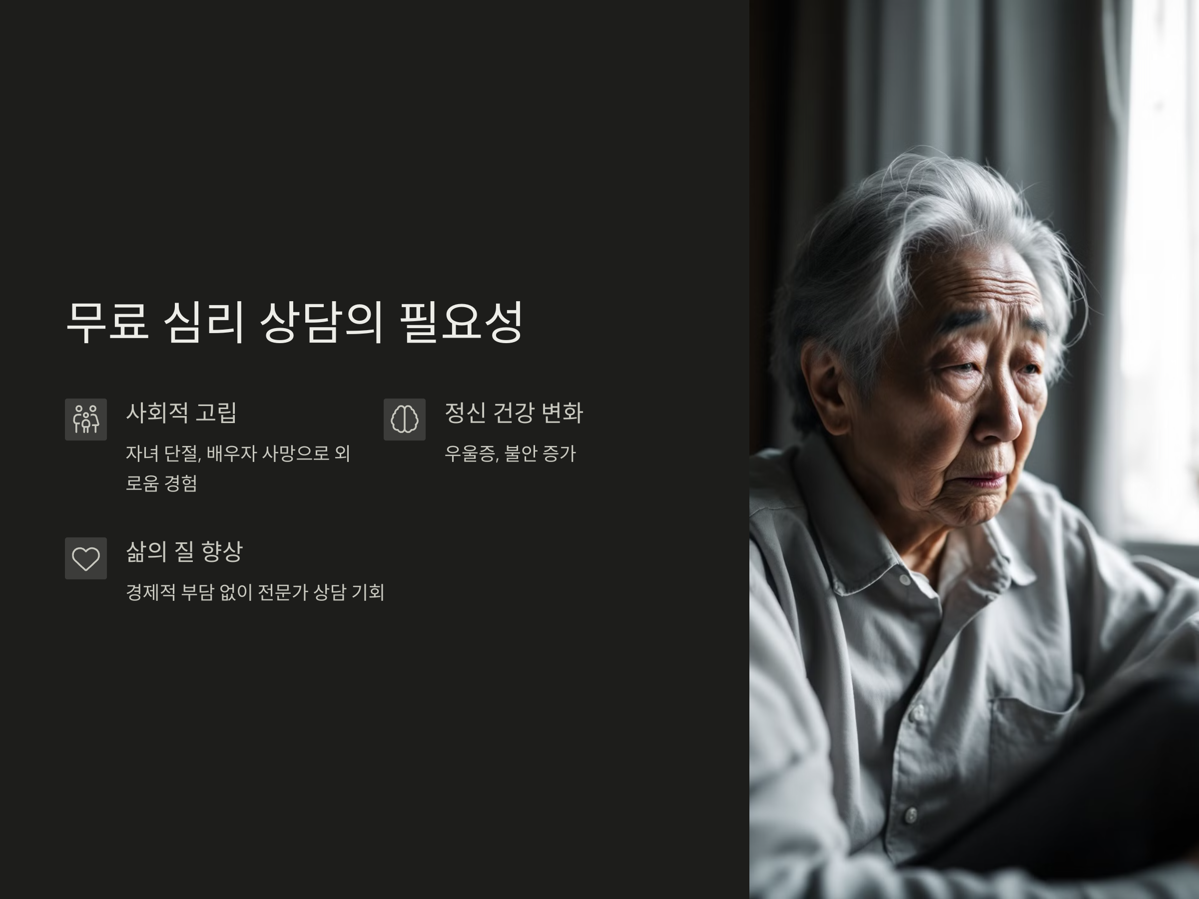 노인을 위한 무료 심리 상담 서비스의 필요성