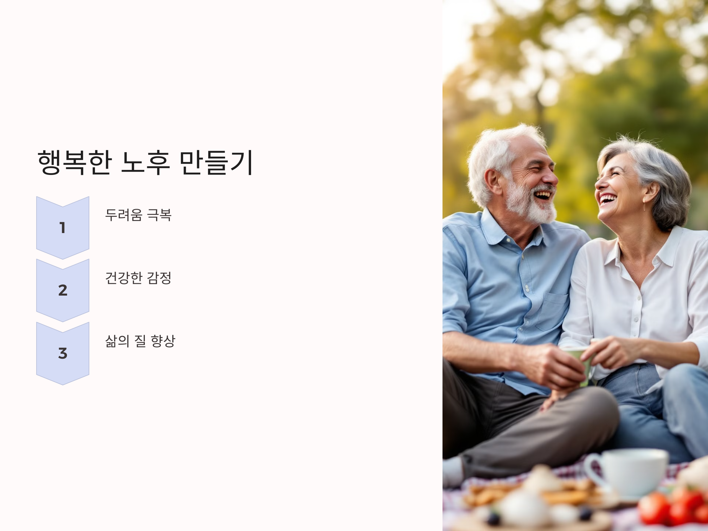 무료 심리 상담 서비스를 통해 노인들의 연애에 대한 두려움을 없애고, 긍정적인 변화를 이끌어낼 수 있습니다. 상담 후에는 자신의 감정을 명확하게 이해하고, 이를 바탕으로 건강한 관계를 구축할 수 있는 자신감을 얻을 수 있습니다.