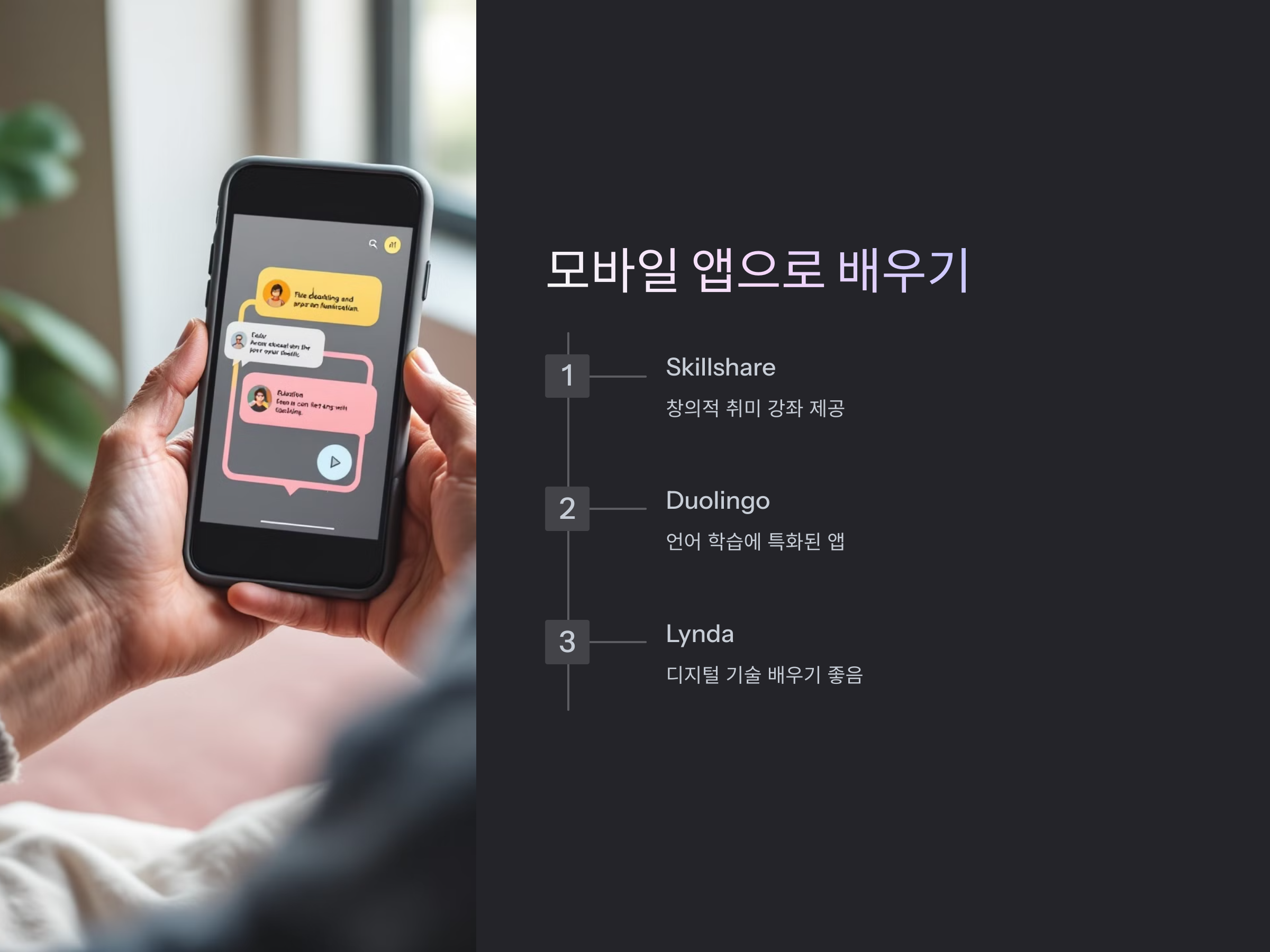 스마트폰을 활용하여 언제 어디서나 취미 강좌를 찾을 수 있는 모바일 앱도 매우 유용합니다. Skillshare, Duolingo, Lynda와 같은 앱은 다양한 취미와 학습 분야에 대한 무료 강좌를 제공합니다. 이런 앱은 모바일 환경에서 매우 편리하게 학습을 이어갈 수 있도록 도와줍니다.