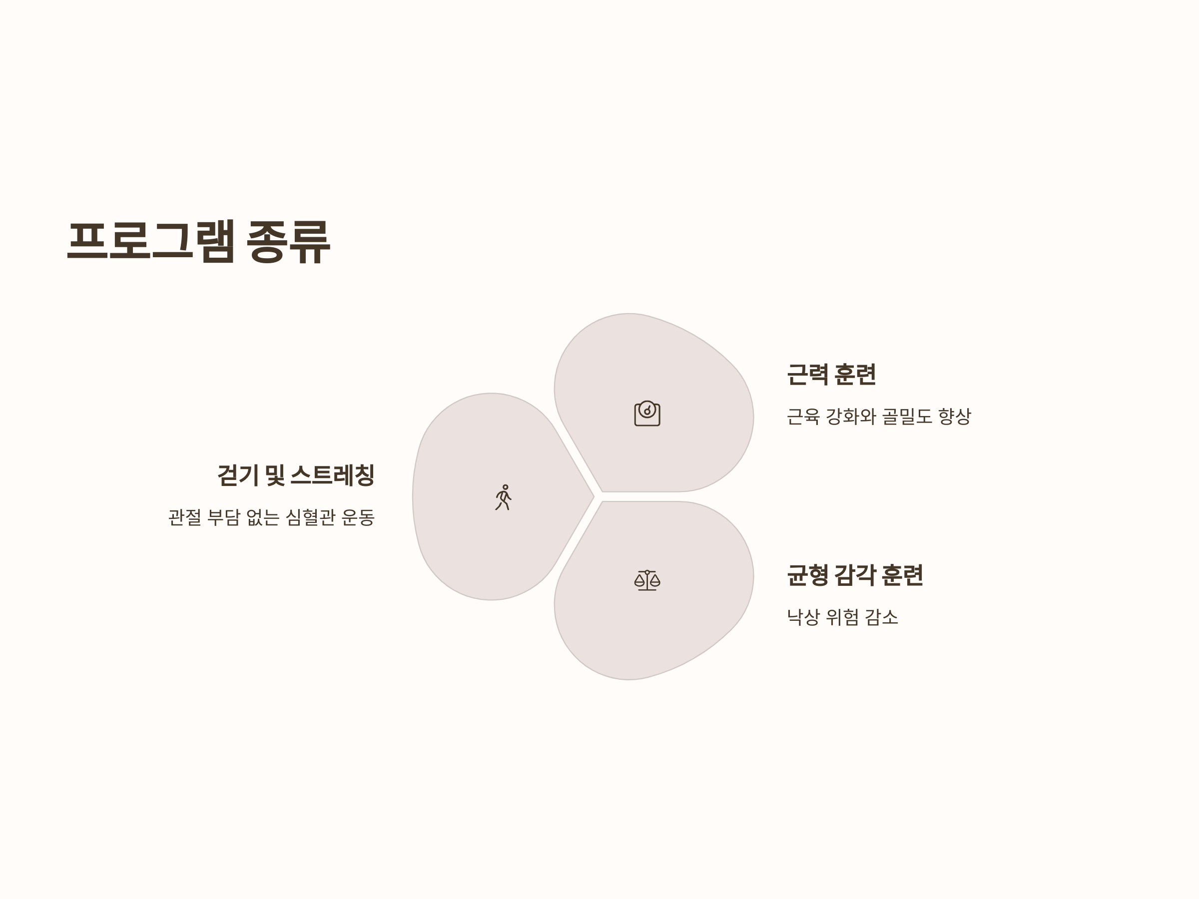 균형 감각을 개선하기 위한 프로그램도 매우 중요합니다. 노인의 경우 균형을 잃고 넘어지는 사고가 빈번하게 발생할 수 있기 때문에, 균형 감각을 강화하는 운동을 통해 낙상 위험을 줄일 수 있습니다.
