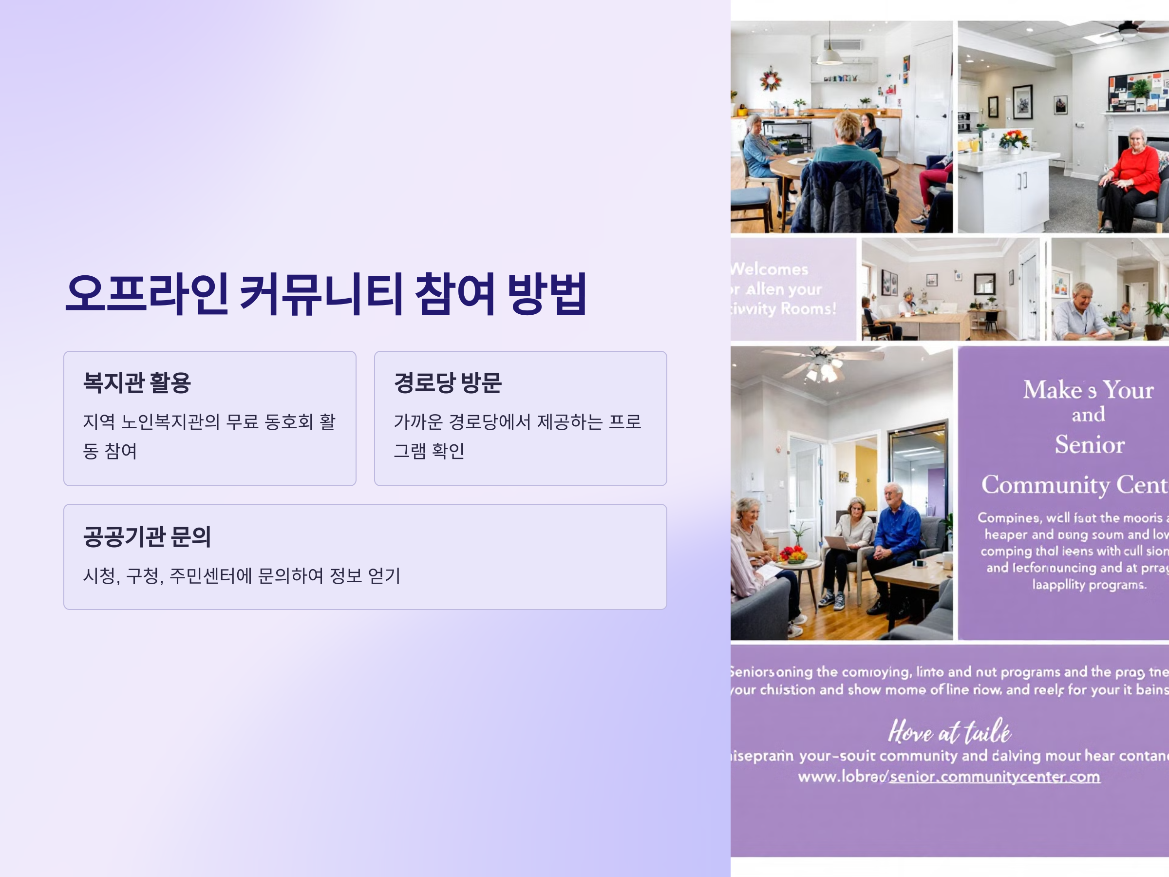노인들의 삶의 질을 높이고, 사회적 연결을 강화하는 데 중요한 역할을 하는 것이 바로 커뮤니티와 동호회입니다. 하지만 많은 노인들이 무료로 참여할 수 있는 커뮤니티와 동호회가 어디에 있는지 모르고, 이로 인해 사회적 고립을 겪기도 합니다. 무료로 참여할 수 있는 커뮤니티나 동호회를 찾는 방법은 생각보다 쉽고 다양합니다. 이번 포스팅에서는 노인들을 위한 무료 커뮤니티 및 동호회를 어떻게 찾을 수 있는지에 대해 자세히 알아보겠습니다. 이 글을 통해 여러분은 노인을 위한 맞춤형 커뮤니티를 쉽게 찾아 참여하고, 활기찬 사회생활을 즐길 수 있는 방법을 알게 될 것입니다.