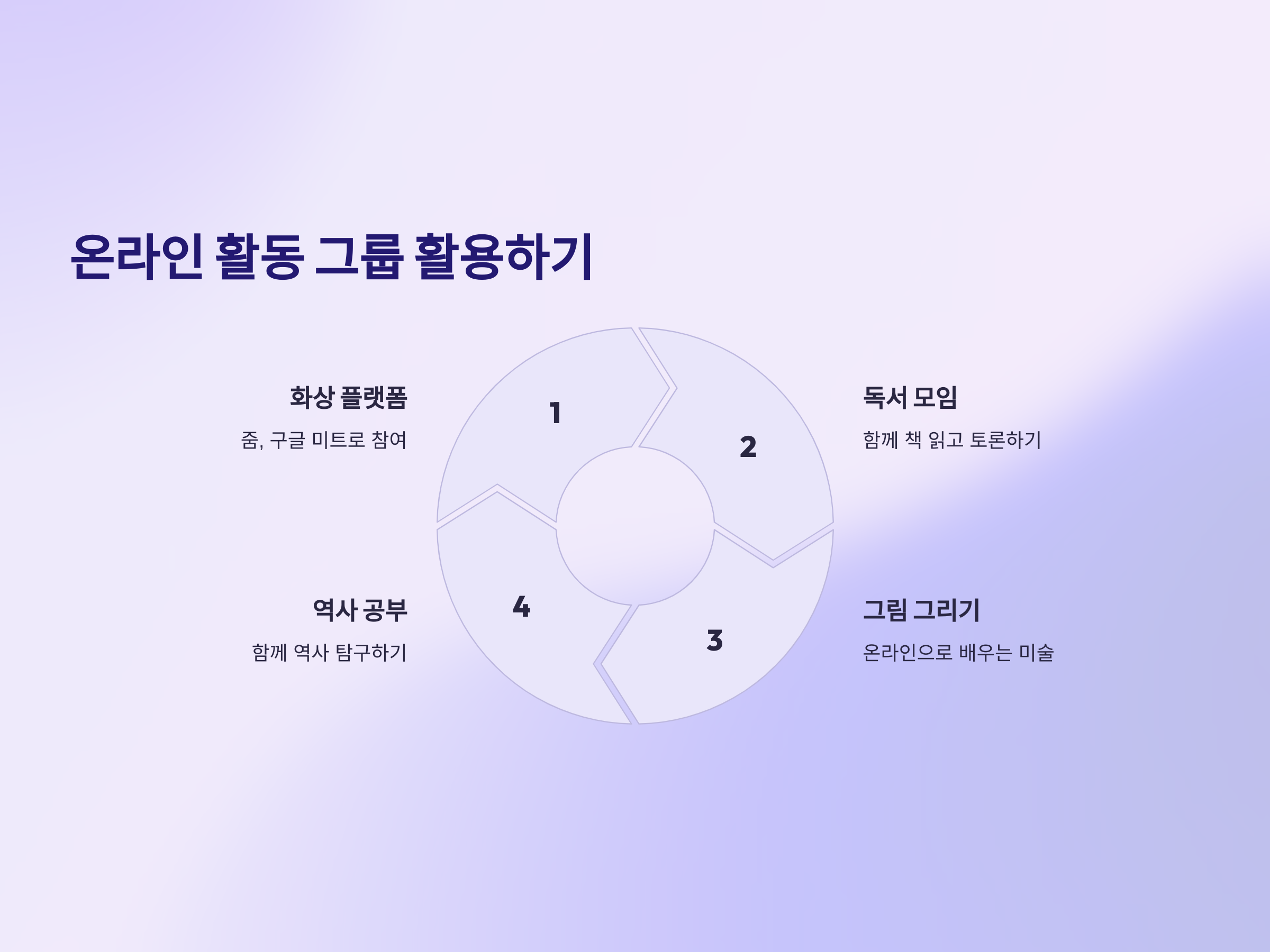인터넷에서 찾을 수 있는 무료 온라인 활동 그룹도 많습니다. 최근에는 줌(Zoom)이나 구글 미트(Google Meet)와 같은 비대면 플랫폼을 활용하여 온라인으로 진행되는 노인 대상의 동호회 활동도 급증하고 있습니다. 예를 들어, 독서 모임, 그림 그리기, 역사 공부 모임 등 다양한 온라인 활동이 제공됩니다. 이런 활동에 참여하면, 집에서 편안하게 여러 사람들과 소통하며 취미 생활을 즐길 수 있는 기회가 됩니다. 온라인 활동은 특히 이동이 어려운 노인들에게 좋은 선택이 될 수 있습니다.