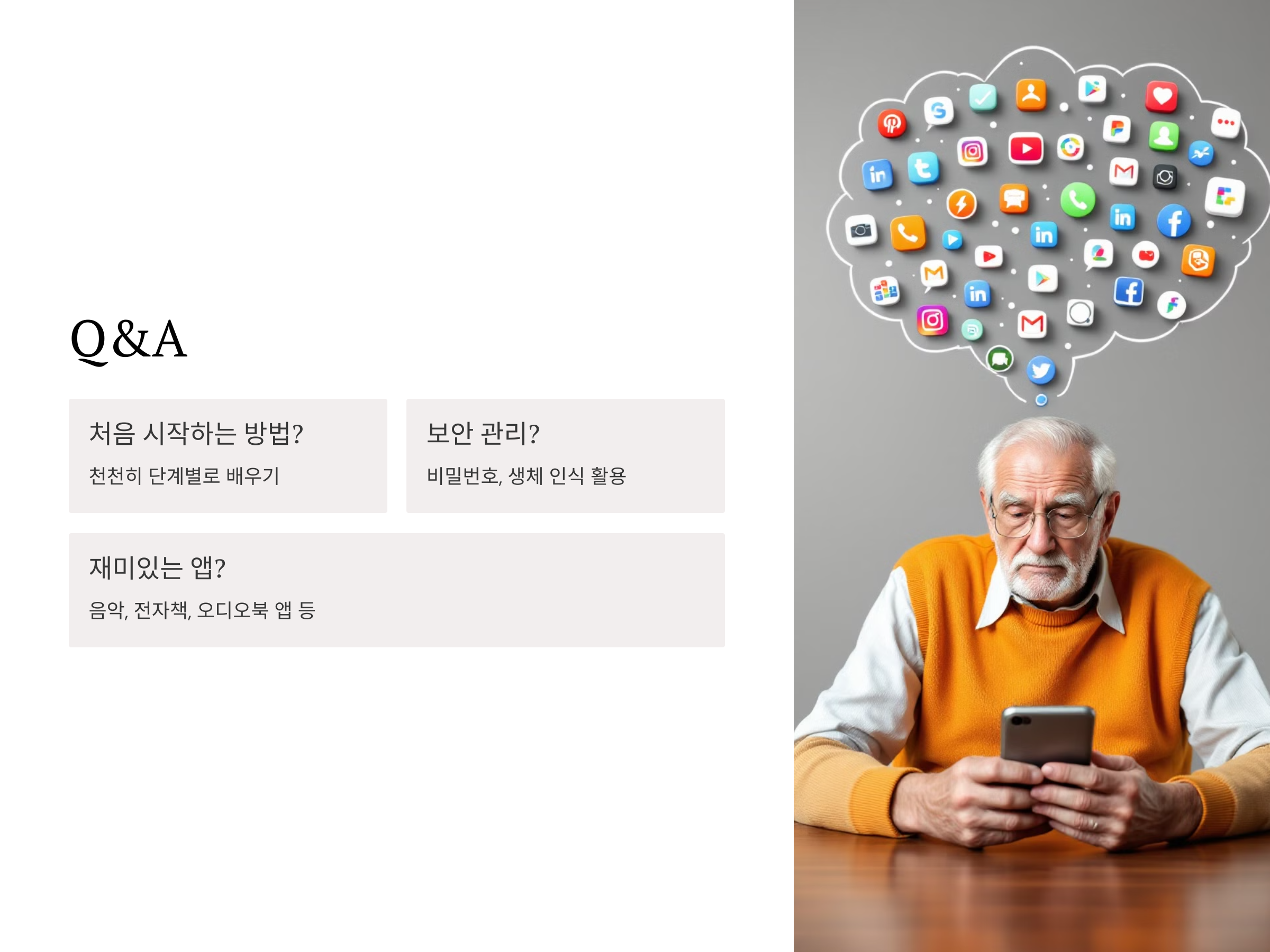 Q1. 스마트폰 사용이 처음이라 걱정되는데, 어떻게 시작하면 좋을까요?