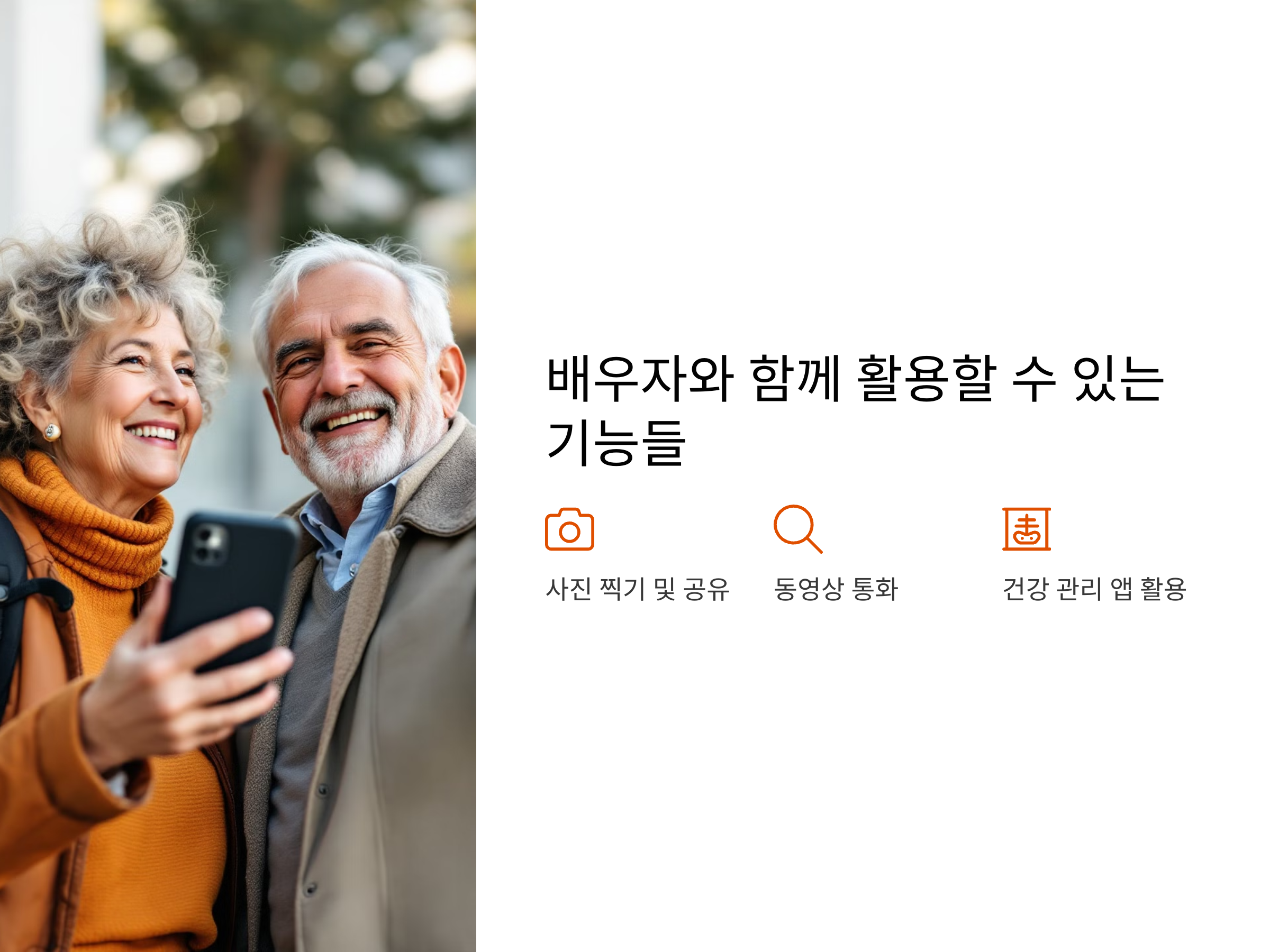 스마트폰은 이제 거의 모든 생활에 필수적인 도구로 자리잡았습니다. 하지만 많은 노인분들이 스마트폰 사용에 어려움을 느끼고 있는 것도 사실입니다. 스마트폰을 배우자와 함께 사용하면 더 쉽고 즐겁게 기능을 익힐 수 있습니다. 오늘은 배우자와 함께 스마트폰을 활용하는 방법을 알아보겠습니다. 각종 기능을 배우자와 함께 사용하면 일상에서 유용하게 스마트폰을 다룰 수 있을 뿐 아니라, 소통의 기회도 늘릴 수 있습니다.