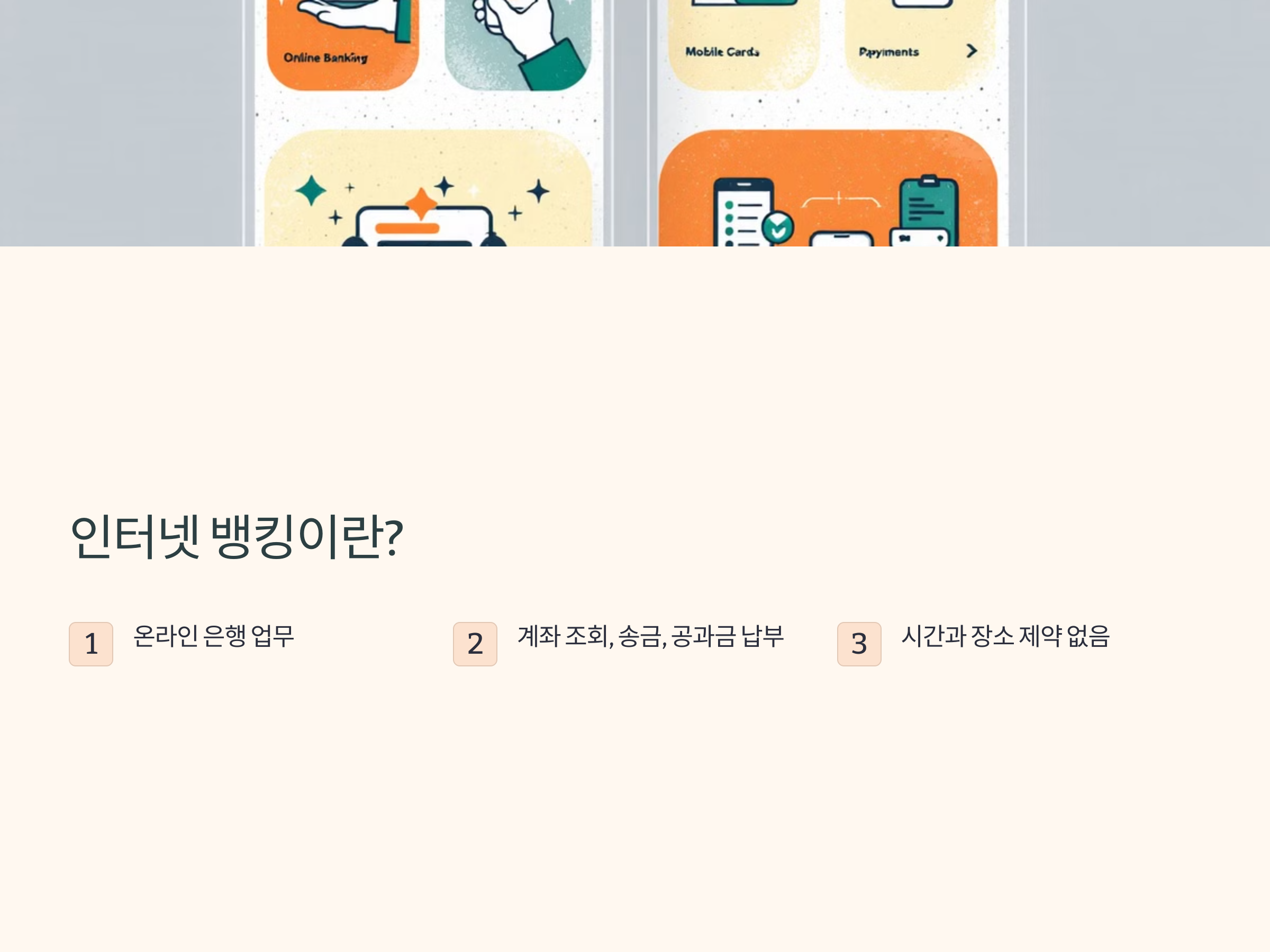 인터넷 뱅킹은 컴퓨터나 스마트폰을 이용해 은행 업무를 온라인으로 처리할 수 있는 서비스입니다. 은행에 직접 가지 않고도 계좌 조회, 송금, 공과금 납부 등 다양한 금융 거래를 쉽게 할 수 있어 매우 편리합니다. 특히, 바쁜 일정을 가진 분들이나, 집에서 편리하게 금융 거래를 하고자 하는 분들에게 큰 도움이 됩니다.