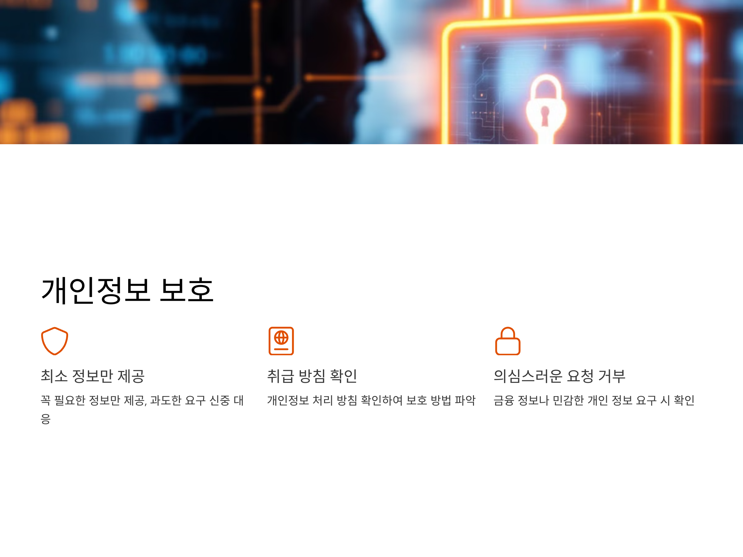 - 필요 최소한의 정보만 제공: 서비스 이용에 꼭 필요한 정보만 제공하고, 과도한 정보 요구 시 신중하게 대응하세요.
