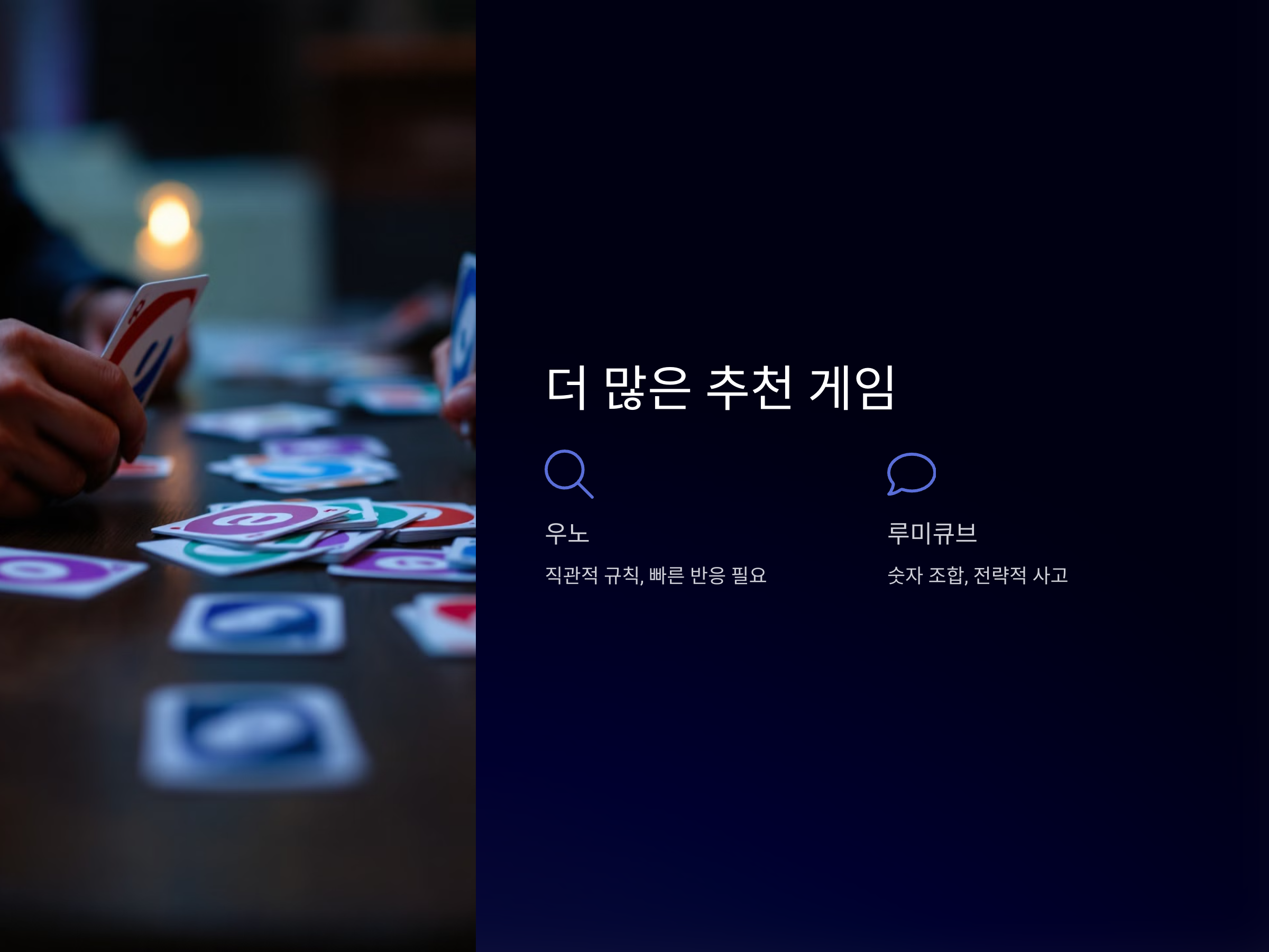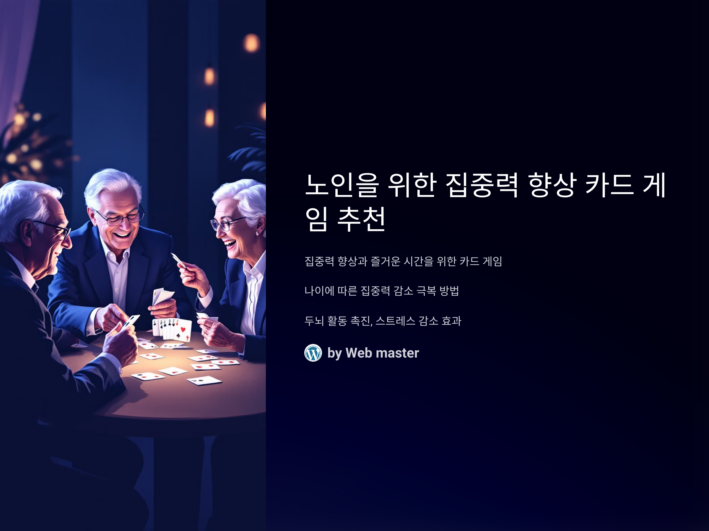 자신에게 맞는 카드 게임을 선택하고, 즐겁게 플레이하면서 집중력을 기르고 뇌 건강을 지켜보세요. 이제 집중력 향상에 도움이 되는 카드 게임으로 활기찬 시간을 보내세요!