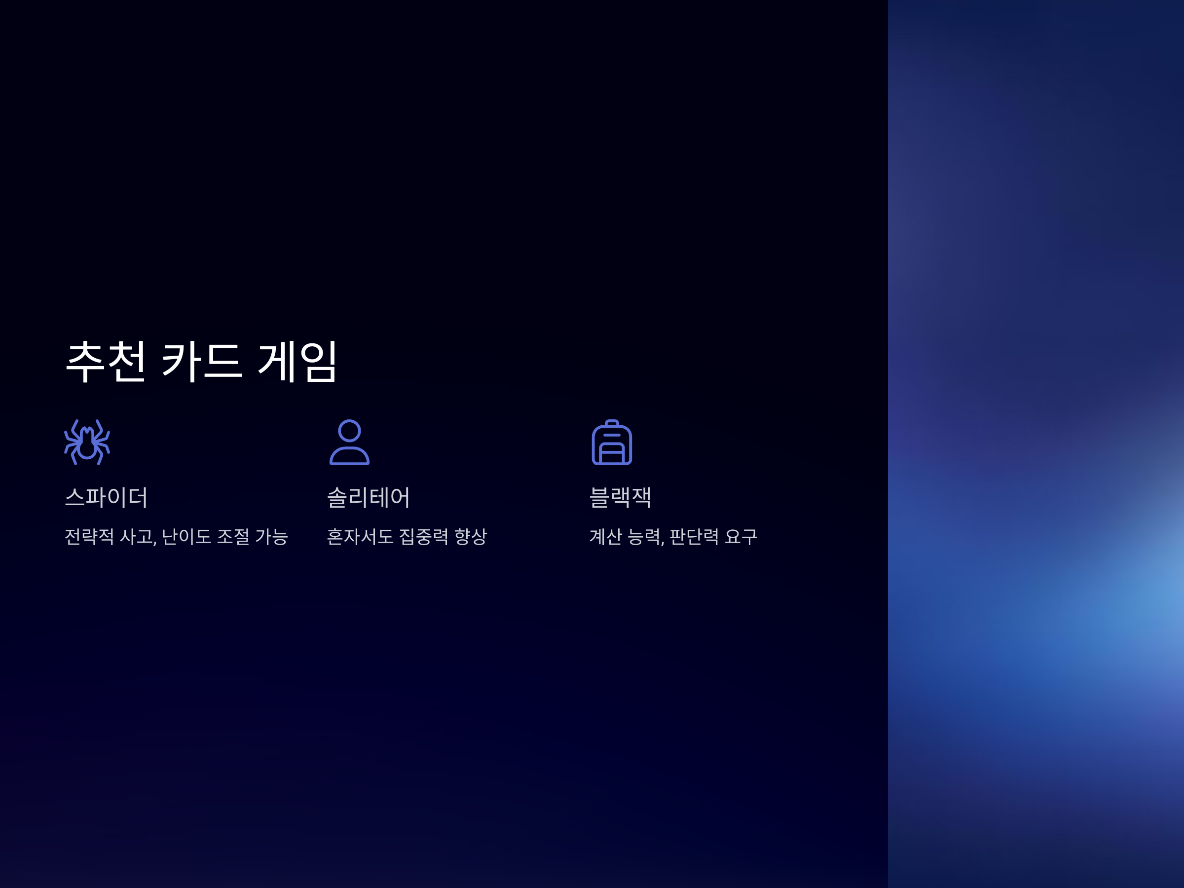 게임은 단순히 시간을 보내는 도구가 아닙니다. 특히 카드 게임은 기억력과 전략을 동시에 활용할 수 있어 두뇌를 자극하는 데 아주 효과적입니다. 카드 게임은 시각적 자극을 제공하고, 규칙을 기억하며 전략을 세우는 과정을 통해 집중력을 자연스럽게 향상시킬 수 있습니다.