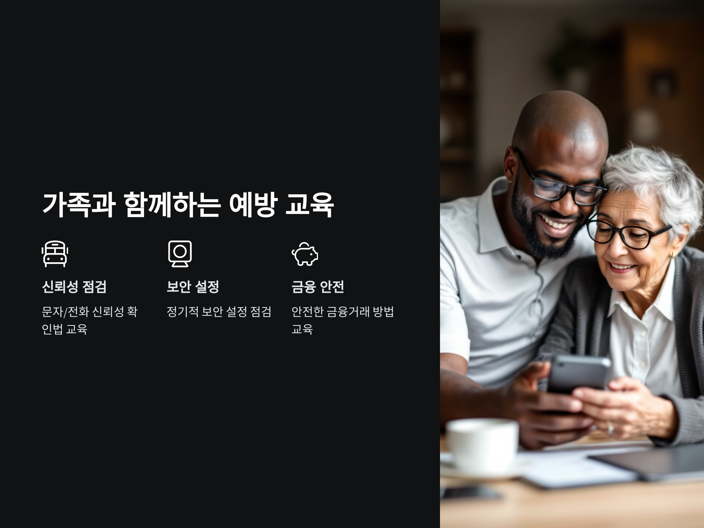 - 스마트폰에서 받는 문자나 전화의 신뢰성을 점검하는 법을 교육