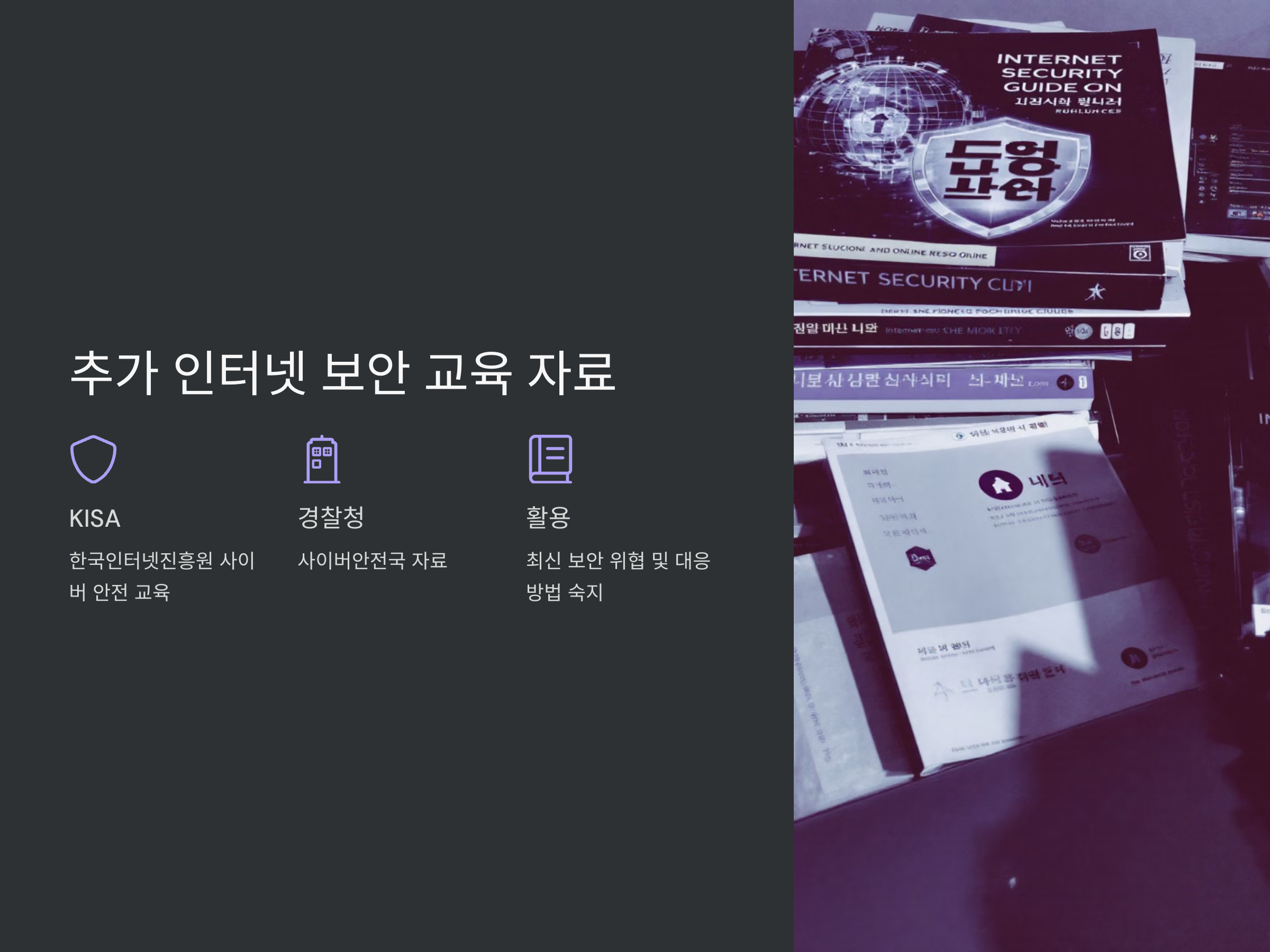 이러한 자료를 통해 최신 보안 위협과 대응 방법을 숙지하시어 안전한 디지털 생활을 유지하시기 바랍니다.