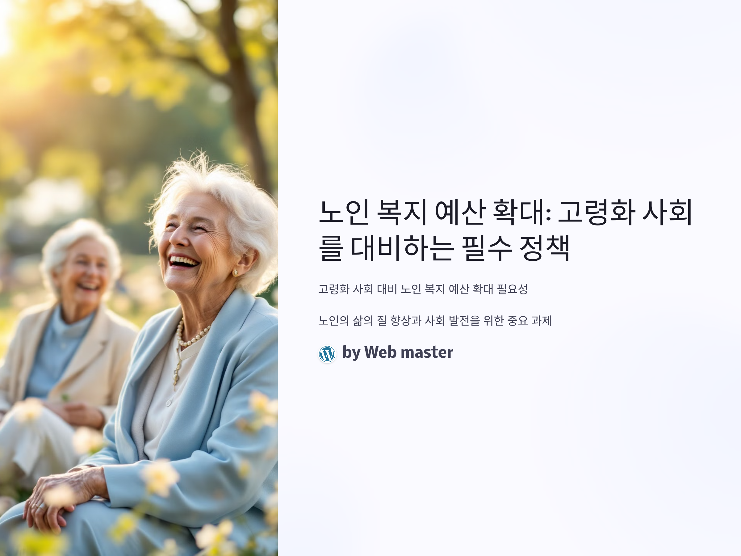 노인 복지 예산의 확대는 이제 단순한 논의에 그치지 않고, 실질적인 사회 변화와 발전을 위한 중요한 과제가 되고 있습니다. 특히 대한민국은 급격히 고령화가 진행 중인 나라로, 고령층의 경제적·사회적 필요를 충족시키기 위해서는 노인 복지 예산의 확대가 필수적입니다. 이는 단순히 복지의 측면을 넘어서, 노인들이 더 나은 삶을 살 수 있도록 돕는 중요한 투자로 작용할 수 있습니다.