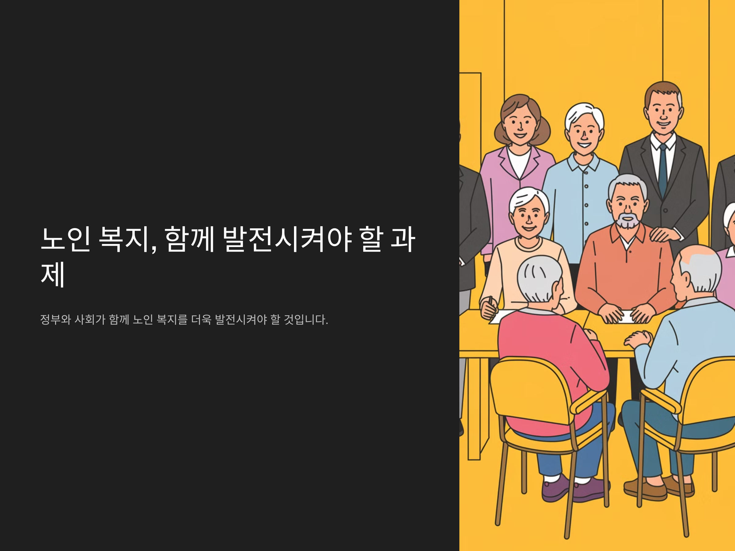 그러나 지속 가능한 복지 정책을 위해서는 재정 운영 계획을 더욱 체계적으로 마련해야 하며, 돌봄 인력 확충과 지역별 격차 해소 등 해결해야 할 과제도 많습니다. 앞으로도 정부와 사회가 함께 노인 복지를 더욱 발전시켜야 할 것입니다.