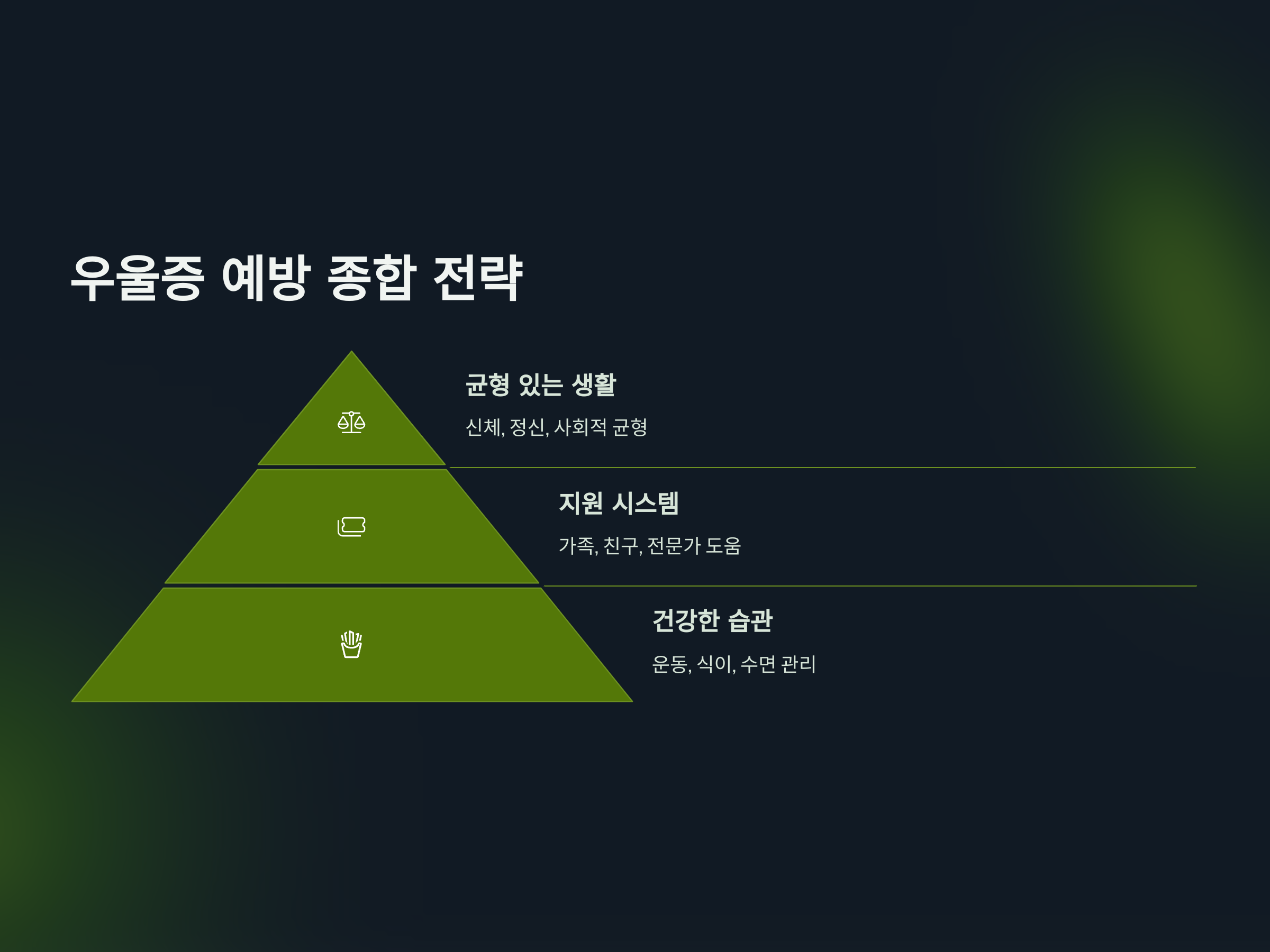 또한, 적절한 수면을 취하는 것도 매우 중요합니다. 수면 부족은 우울증의 주요 원인 중 하나로, 신체의 회복력을 떨어뜨리고 정신적 안정감을 해칠 수 있습니다. 규칙적인 수면 패턴을 유지하며, 하루 7~8시간의 충분한 수면을 취하는 것이 중요합니다.