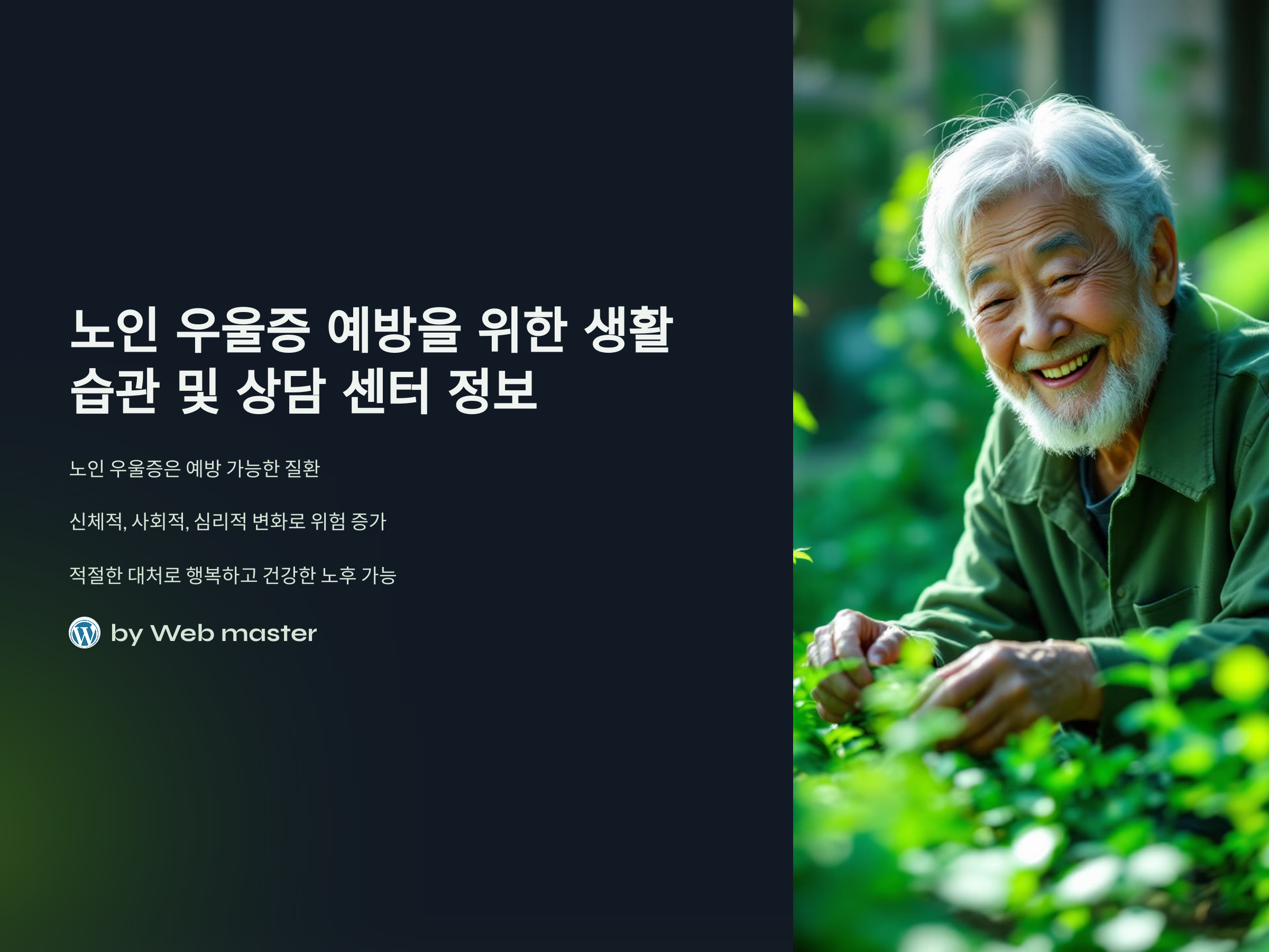 노인 우울증은 예방 가능한 질환이며, 적절한 생활 습관을 유지하고, 전문가의 상담을 통해 관리할 수 있습니다. 신체적 건강을 유지하고, 사회적 활동에 참여하며, 정신적 스트레스를 줄이는 방법을 실천하는 것이 중요합니다. 또한, 상담 센터와 전문가의 도움을 통해 우울증을 예방하거나 치료할 수 있는 방법을 찾는 것이 필요합니다. 노인이 행복한 노후를 보내기 위해서는 우울증 예방을 위한 체계적인 노력이 필요합니다.