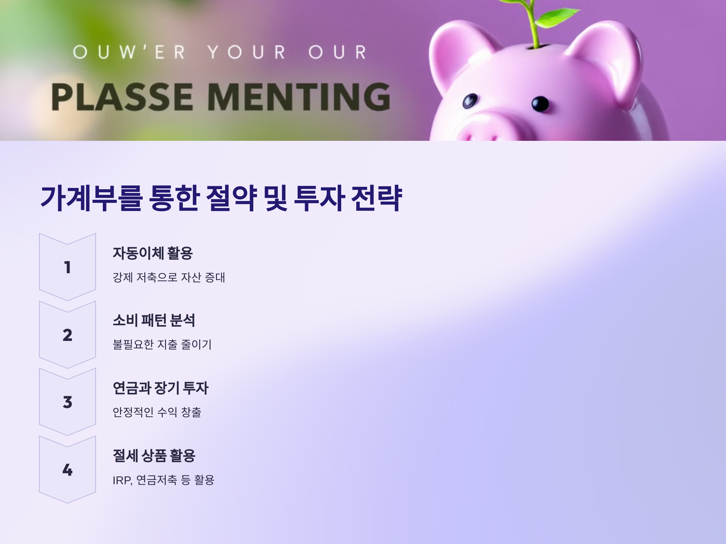 가계부는 단순히 기록하는 것이 아니라, 자산을 늘리는 데 활용할 수 있어야 합니다. 이를 위해 효과적인 절약 및 투자 전략을 소개합니다.