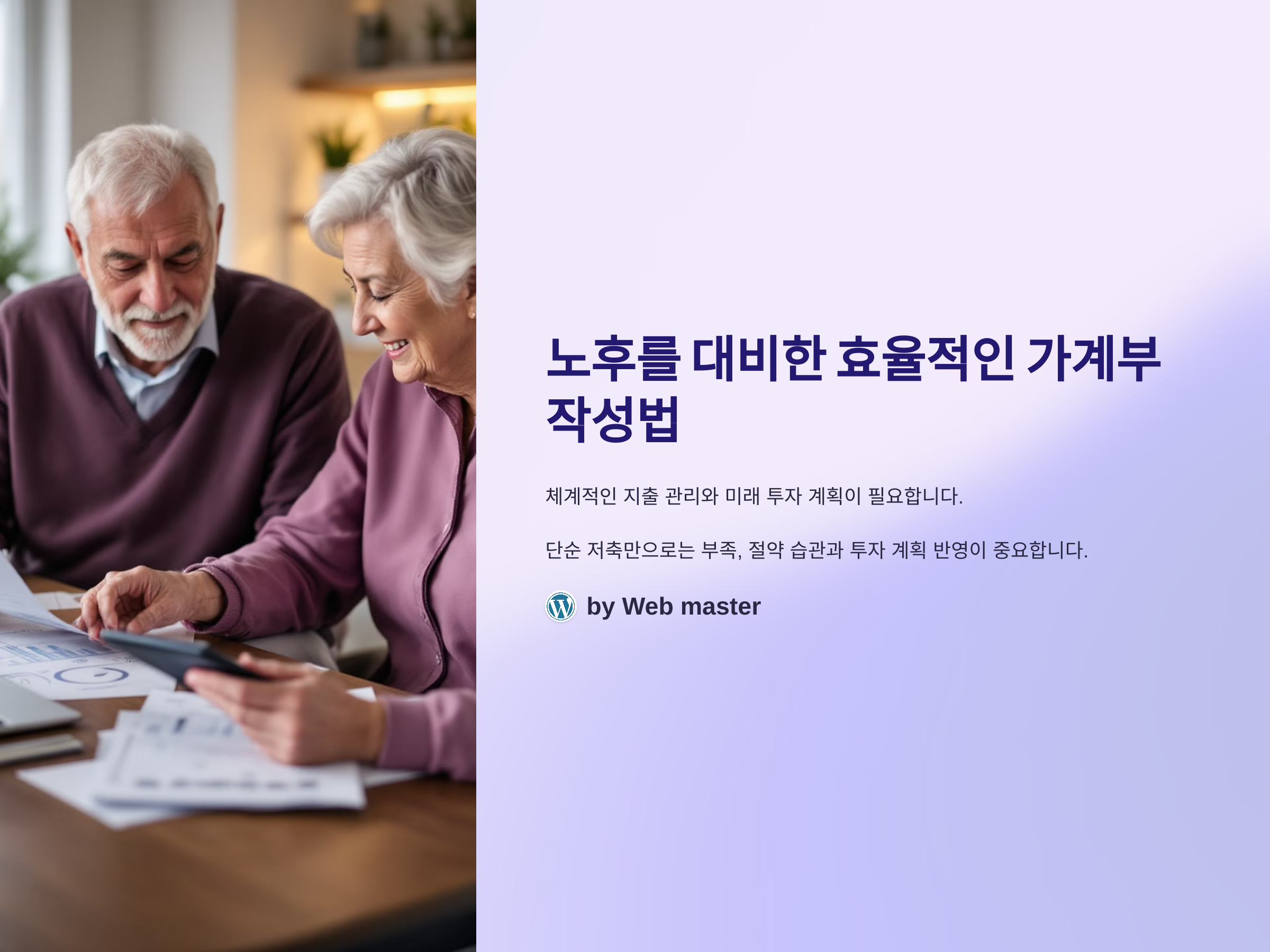 노후를 대비하기 위한 가계부 작성은 단순한 기록이 아니라, 장기적인 재무 계획을 수립하는 과정입니다. 지금부터라도 체계적으로 가계부를 작성하고, 소비 습관을 개선하며, 투자와 저축을 병행하는 습관을 들이는 것이 중요합니다.
