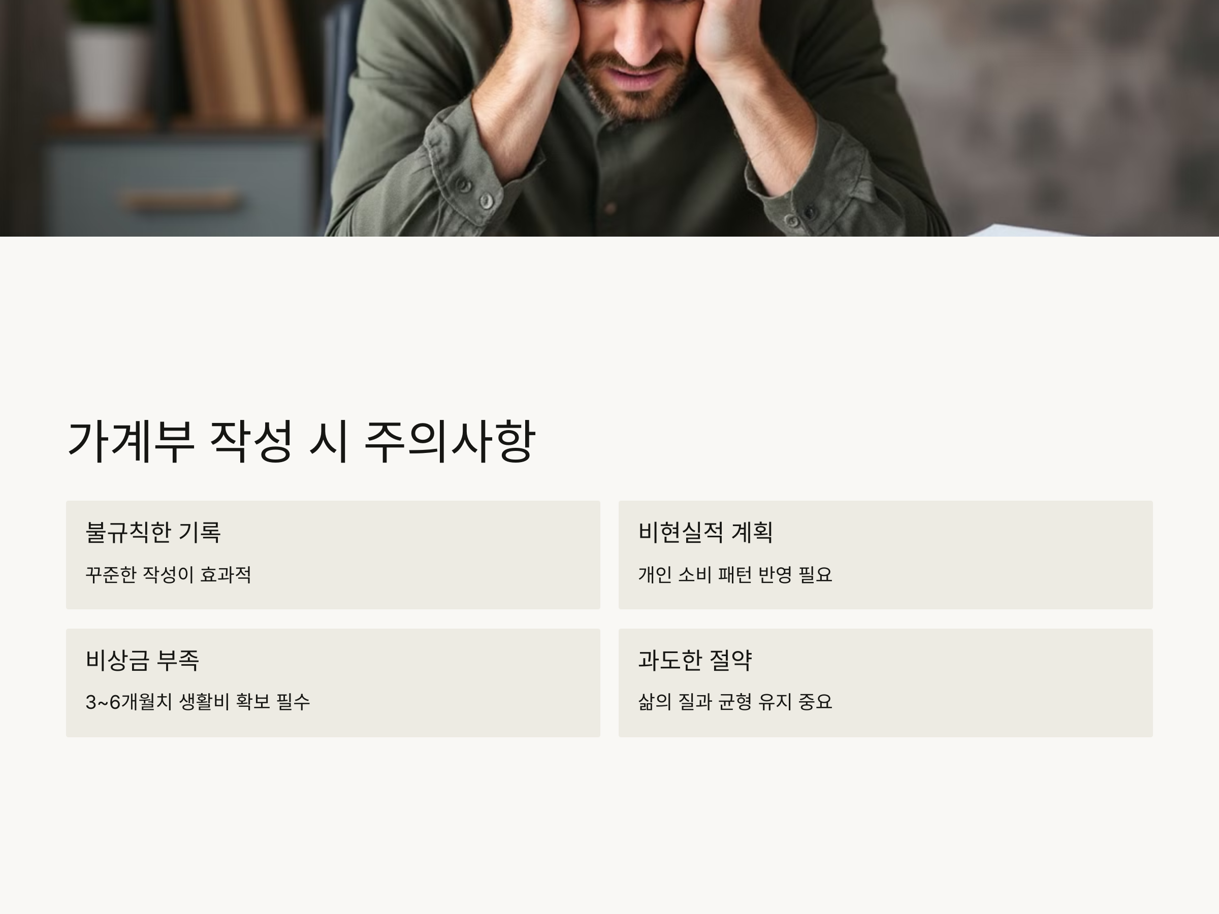 - 불규칙한 기록: 가계부를 가끔씩만 작성하면 효과를 보기 어렵습니다. 꾸준한 기록이 중요합니다.