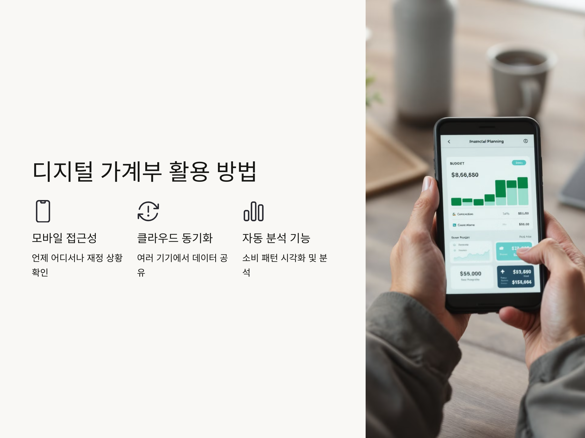 디지털 가계부를 활용하면 더욱 편리하게 자산을 관리할 수 있습니다.